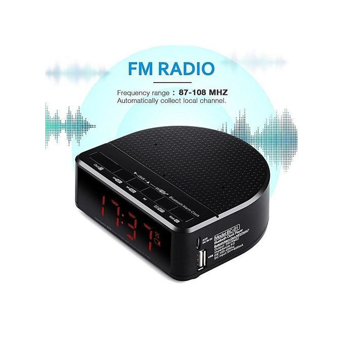 Compatibility-- compatible with various systems, such as mobile phone, computer flat and bluetooth devices.Do you want a easy digital clock that can play pleasant music in the morning? Try this bluetooth bedside alarm clock.FM radio-Press volume up/down to select radio. Listen favorite channels with digital clock radio.Especially good for child and elder use.Music clock -Setting music alarm clock. Wake up with soft music.