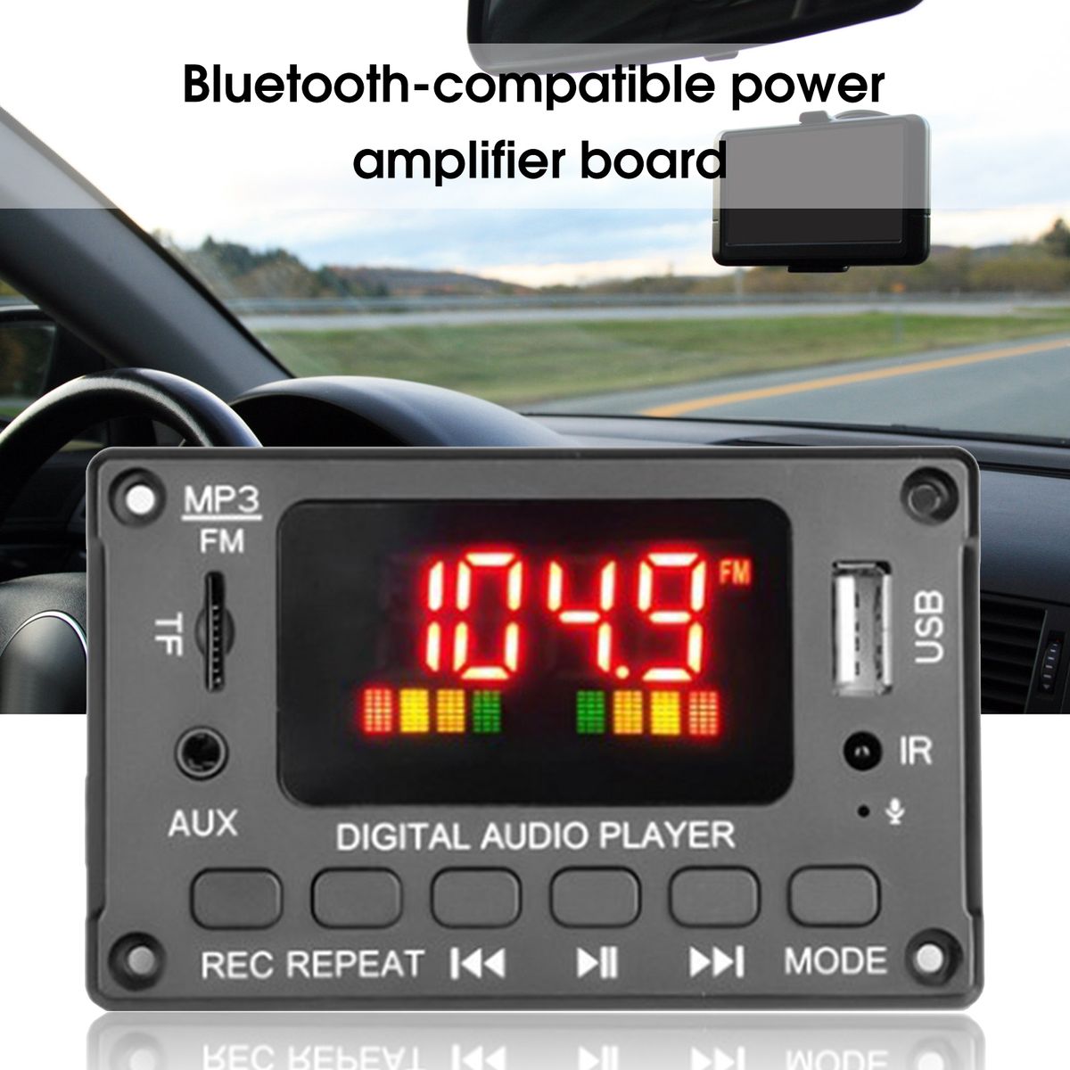 There are many appealing features of this power amplifier board including Bluetooth-compatible call, recording function, 10m IR remote control, USB input, AUX, TF card slot, color screen digital display, power off memory, line in input, FM radio and so on.