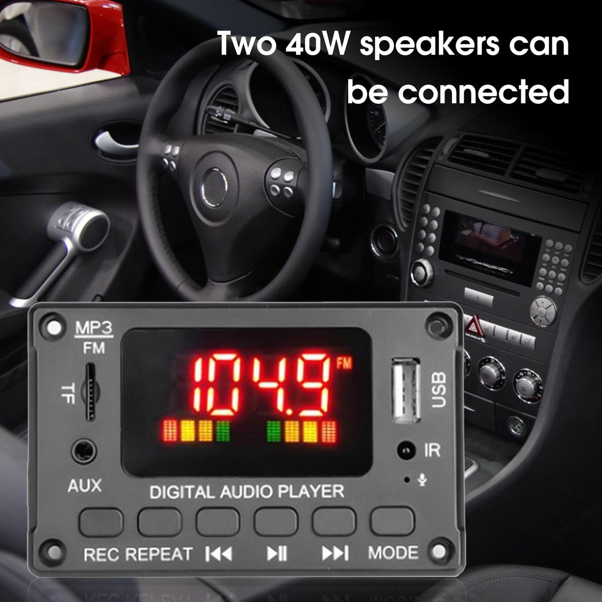 It supports MP3, WMA, WAV, FLAC, APE lossless music formats and can connect two 40W speakers at the same time.