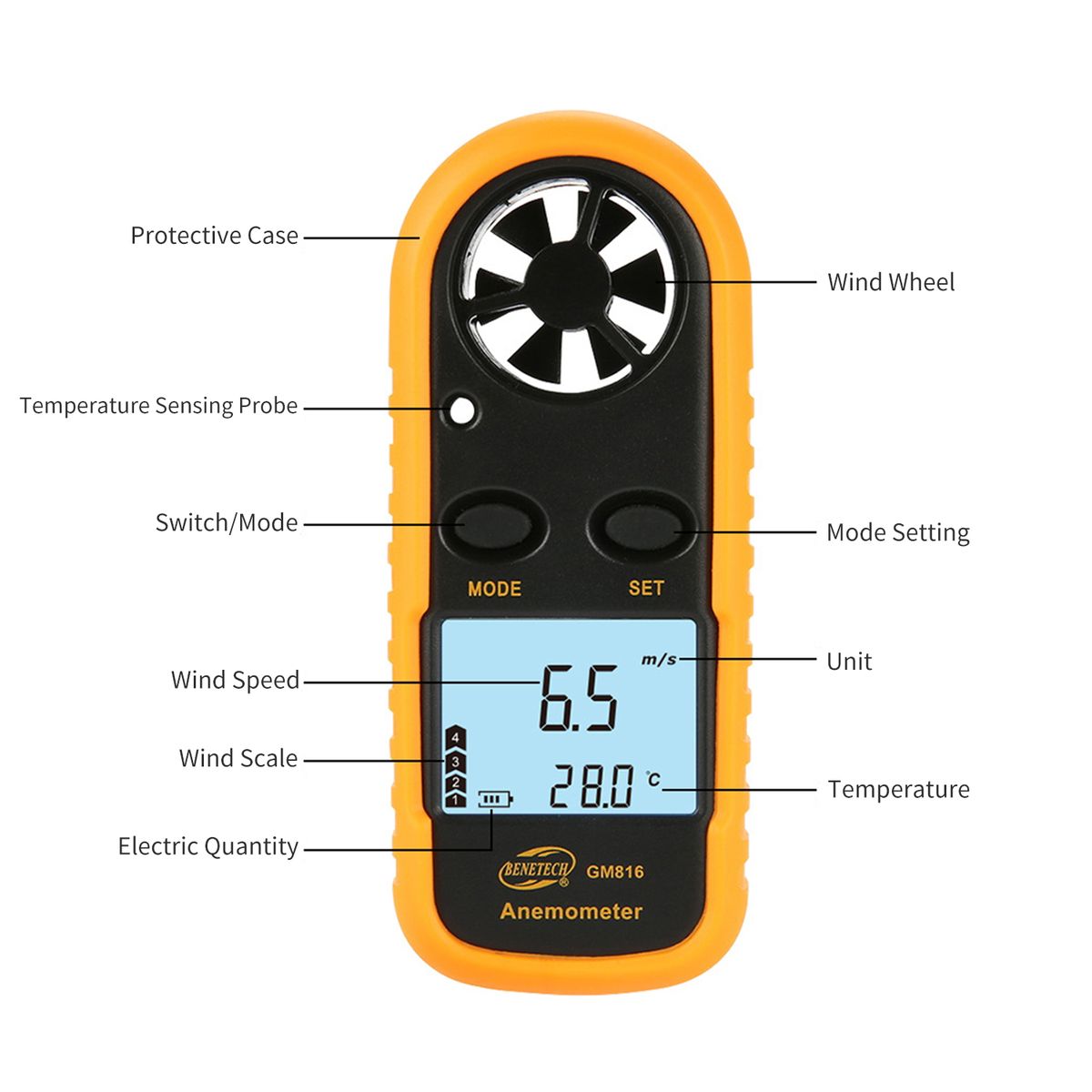 The wind speed anemometer with rubber outer case provides good protection, and the wrist strap ensures you don\'t lose the anemometer in a strong wind. Back-light makes you easy to read and accurate in low light areas or night. The wind speed meter can be used for windsurfing, sailing, fishing, kite flying, and mountaineering.