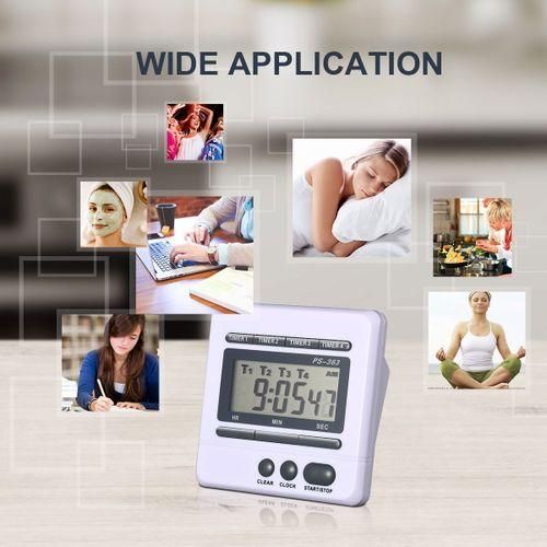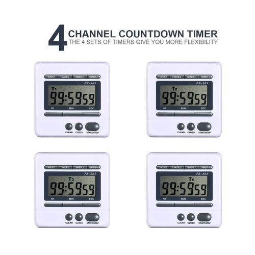 4 channel countdown timer.The 4 sets of timers give you some flexibility. It can be used at the same time when baking several different batches of something.