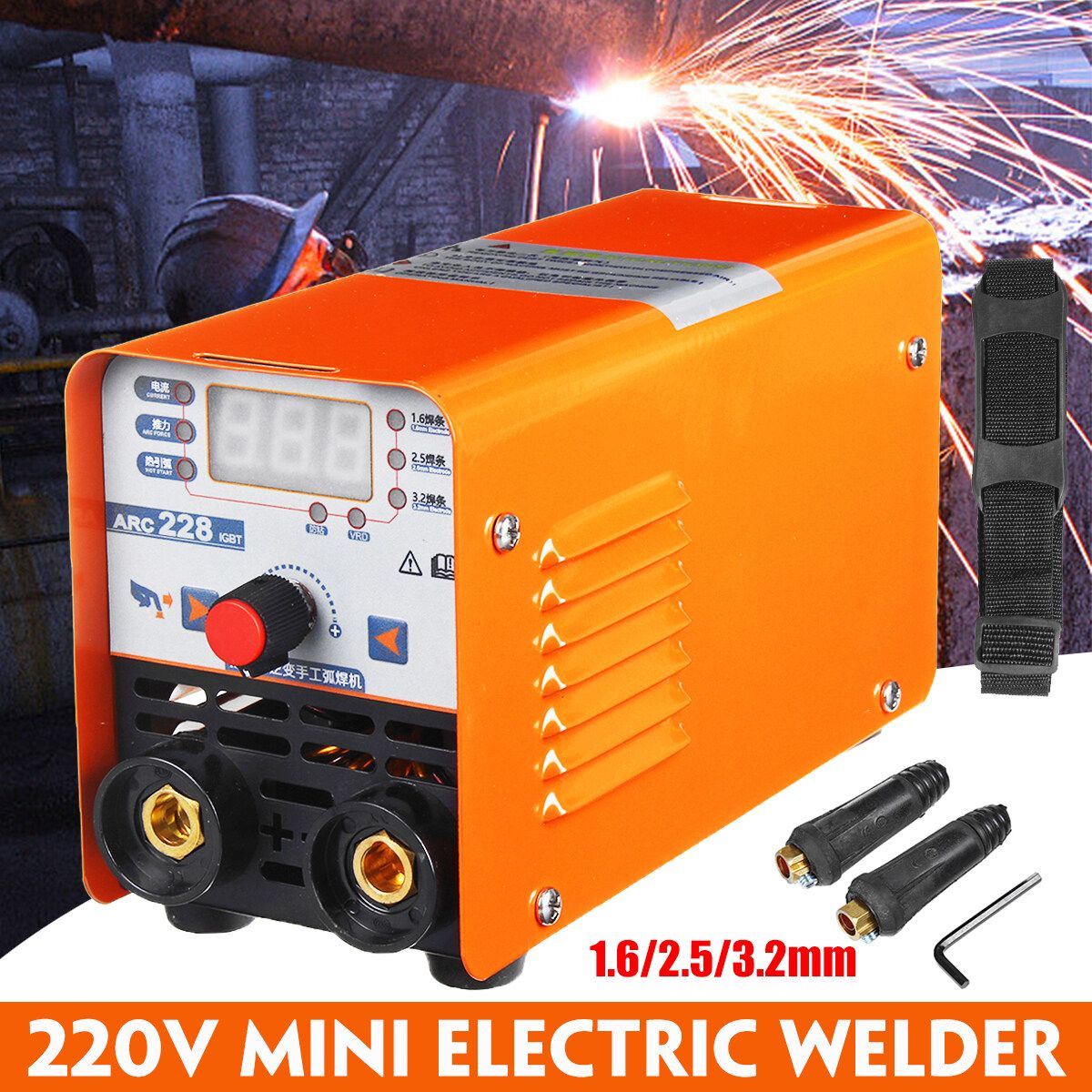 1 x ARC-228 Electric welder 2 x Insulated electrode 1 x T-wrench 1 x Strap