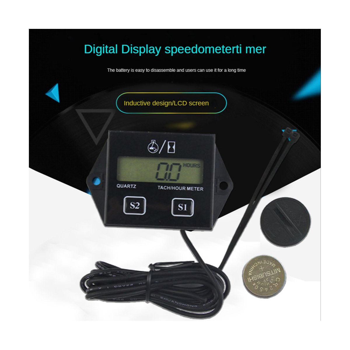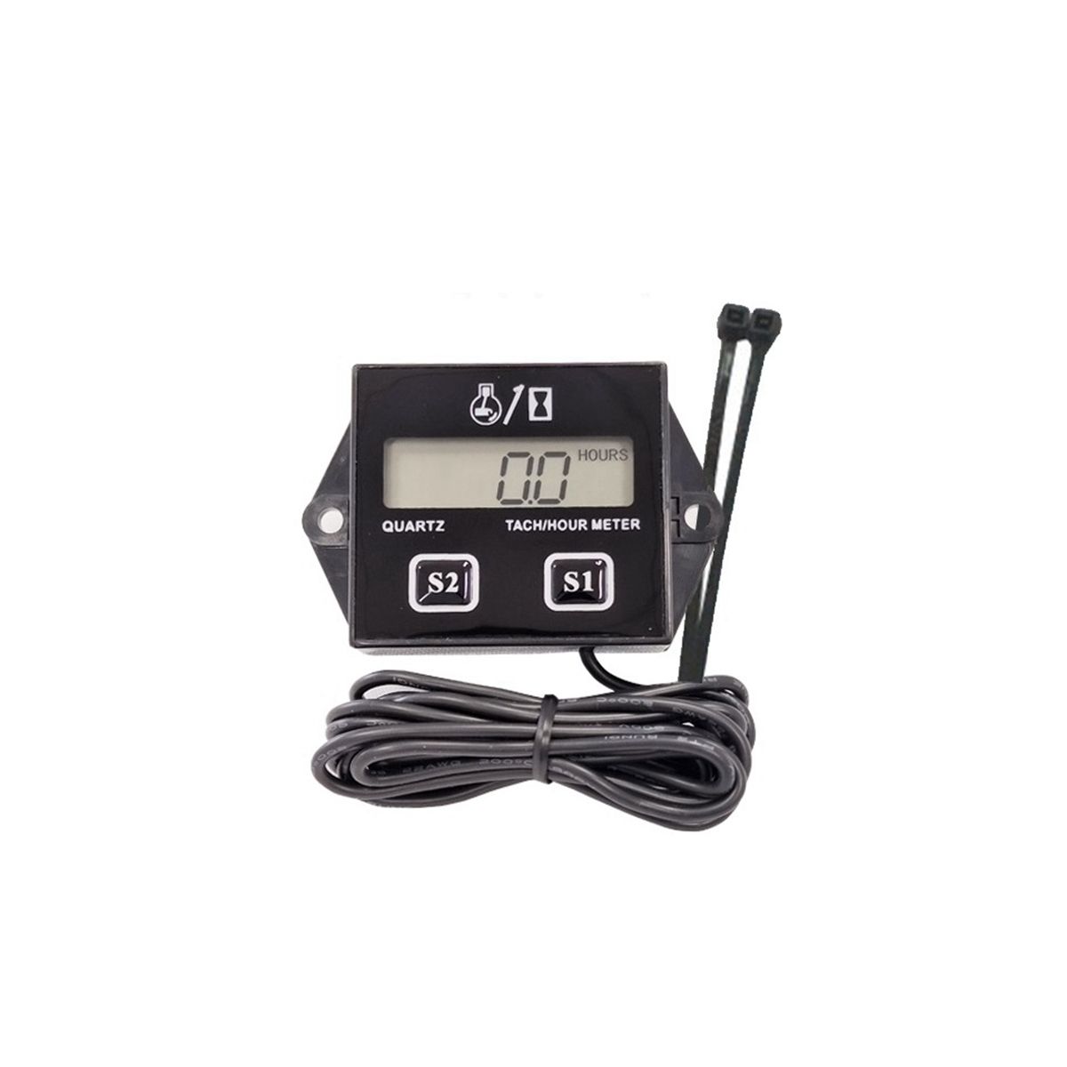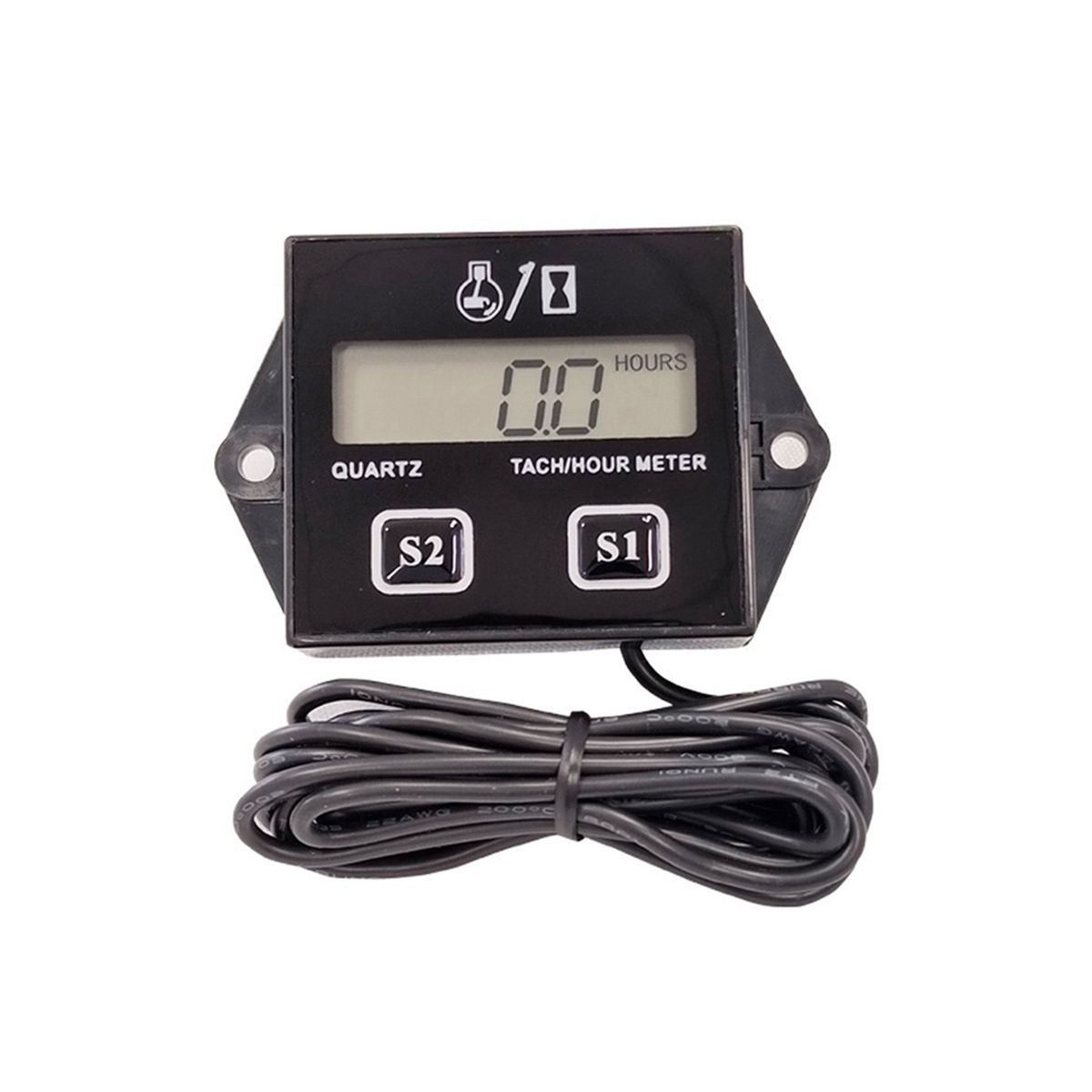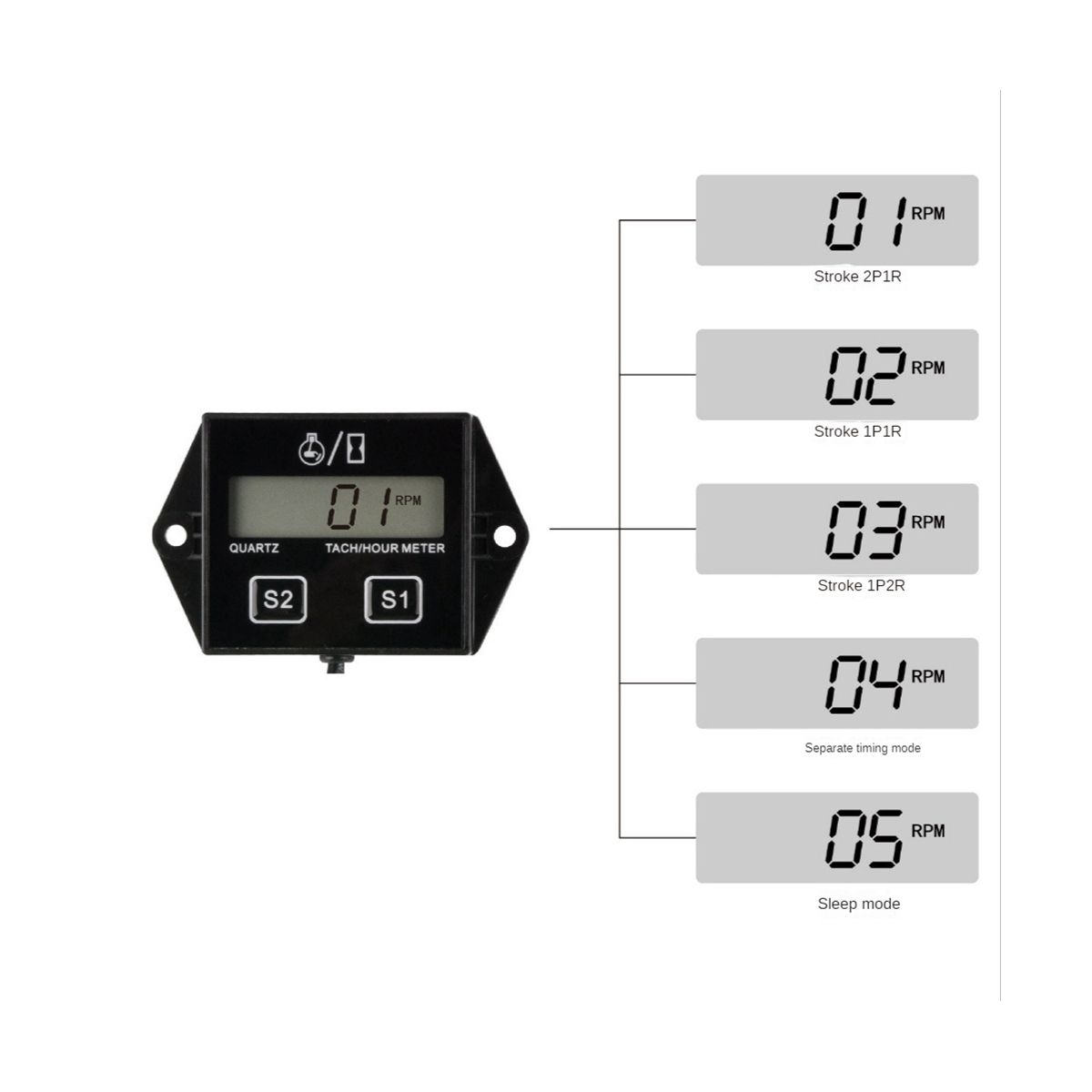 Characteristics Brand new and high quality tachometerhourmeter with LCD display Ideal for car engines operating in the 25000 RPM range Works on any 2 or 4 stroke engine With reset to zero hour function the hour meter reads up to 10000 hours then resets to zero and the tachometer can read up to 99999 RPM
