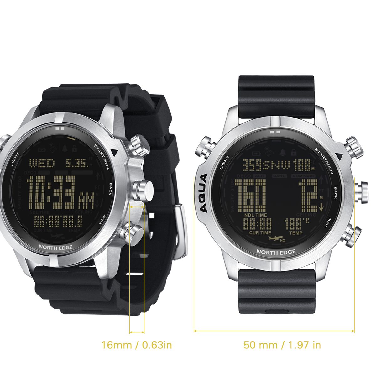 Features:Multifunctional: Scuba Diving, NDL Time, Nitrox, Compass, Altimeter, Barometer, Thermometer, Time, Stopwatch, Count Down, Alarm, Back light, 100M water proof and so on.