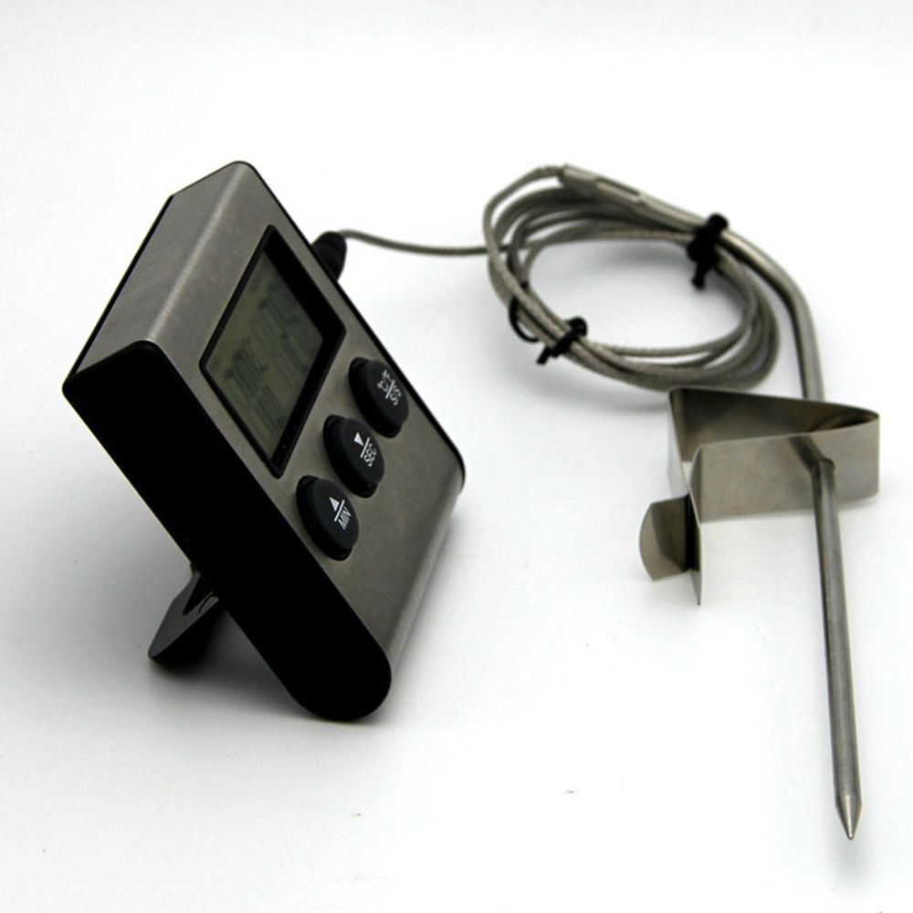 5.Inset the probe into the cooked food.When temperature of the food reached the set temperature,the thermometer will alarm.