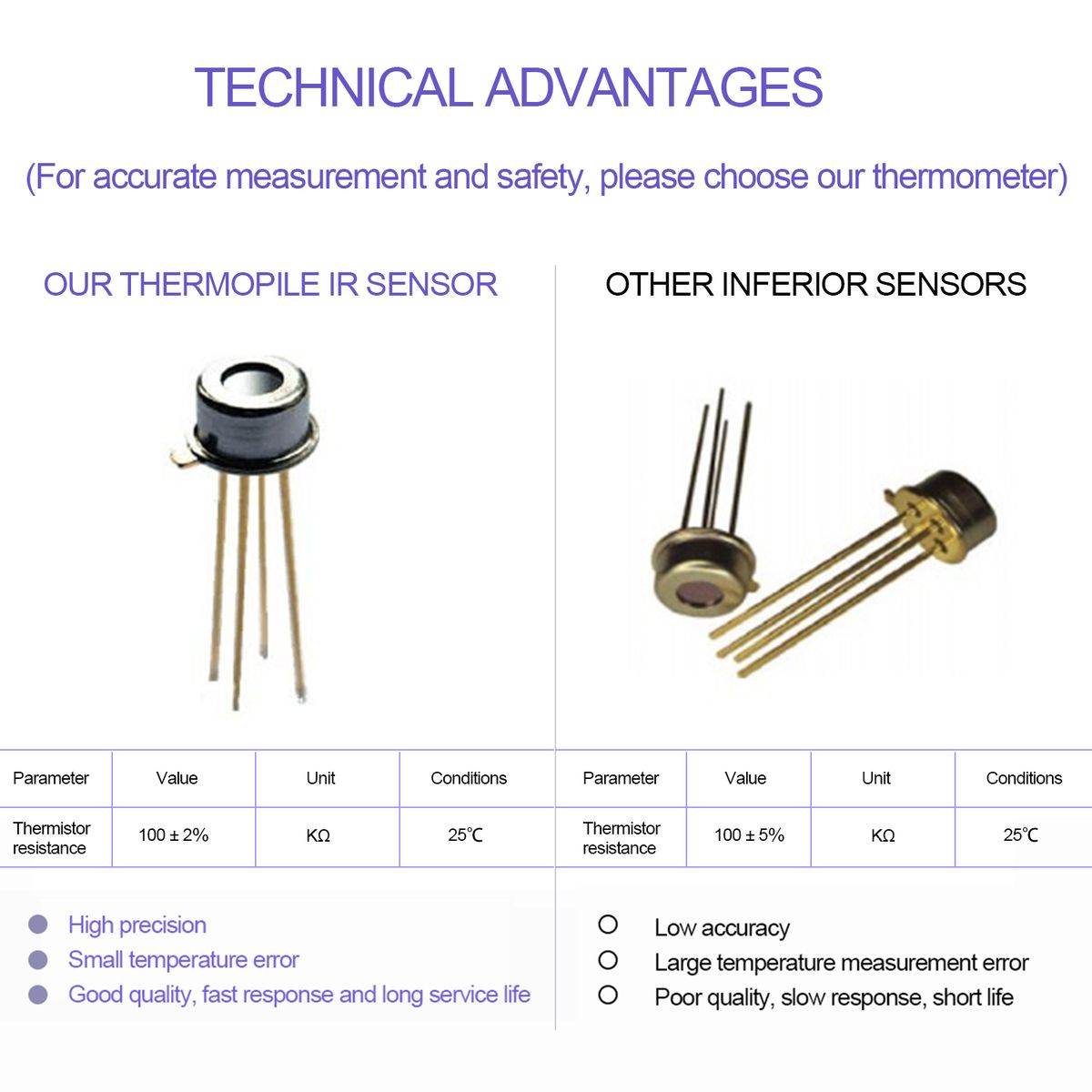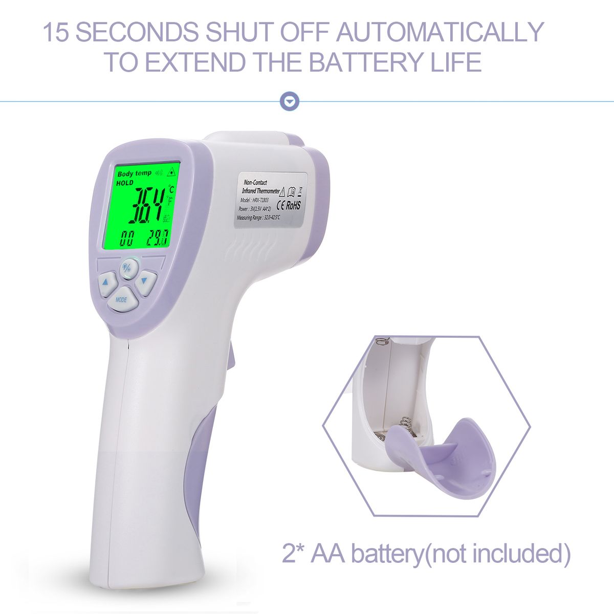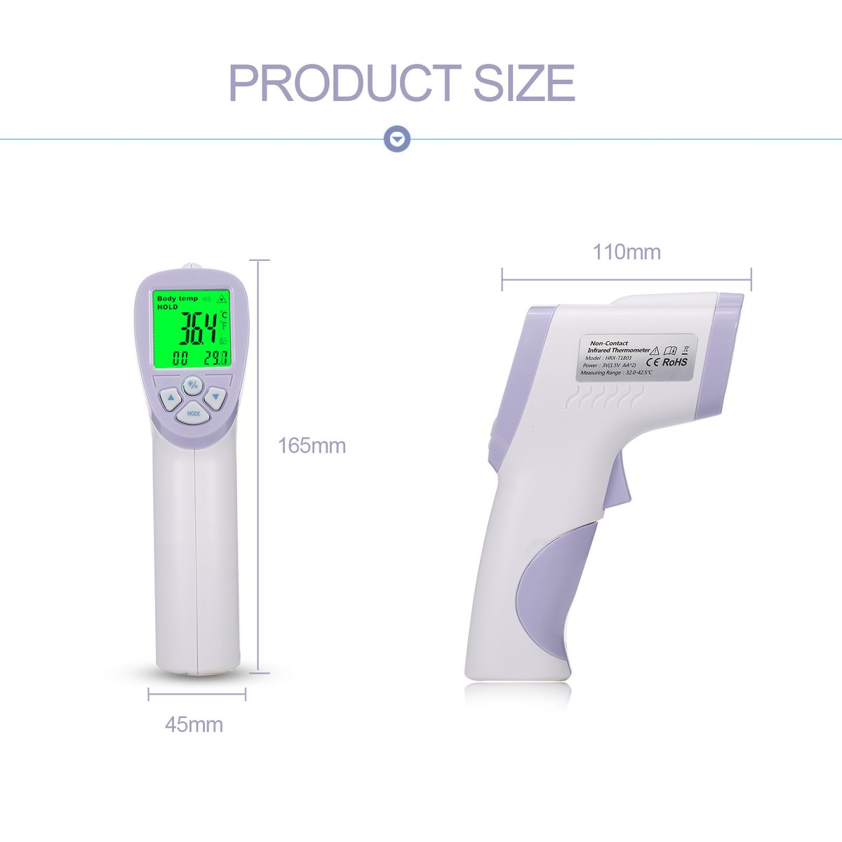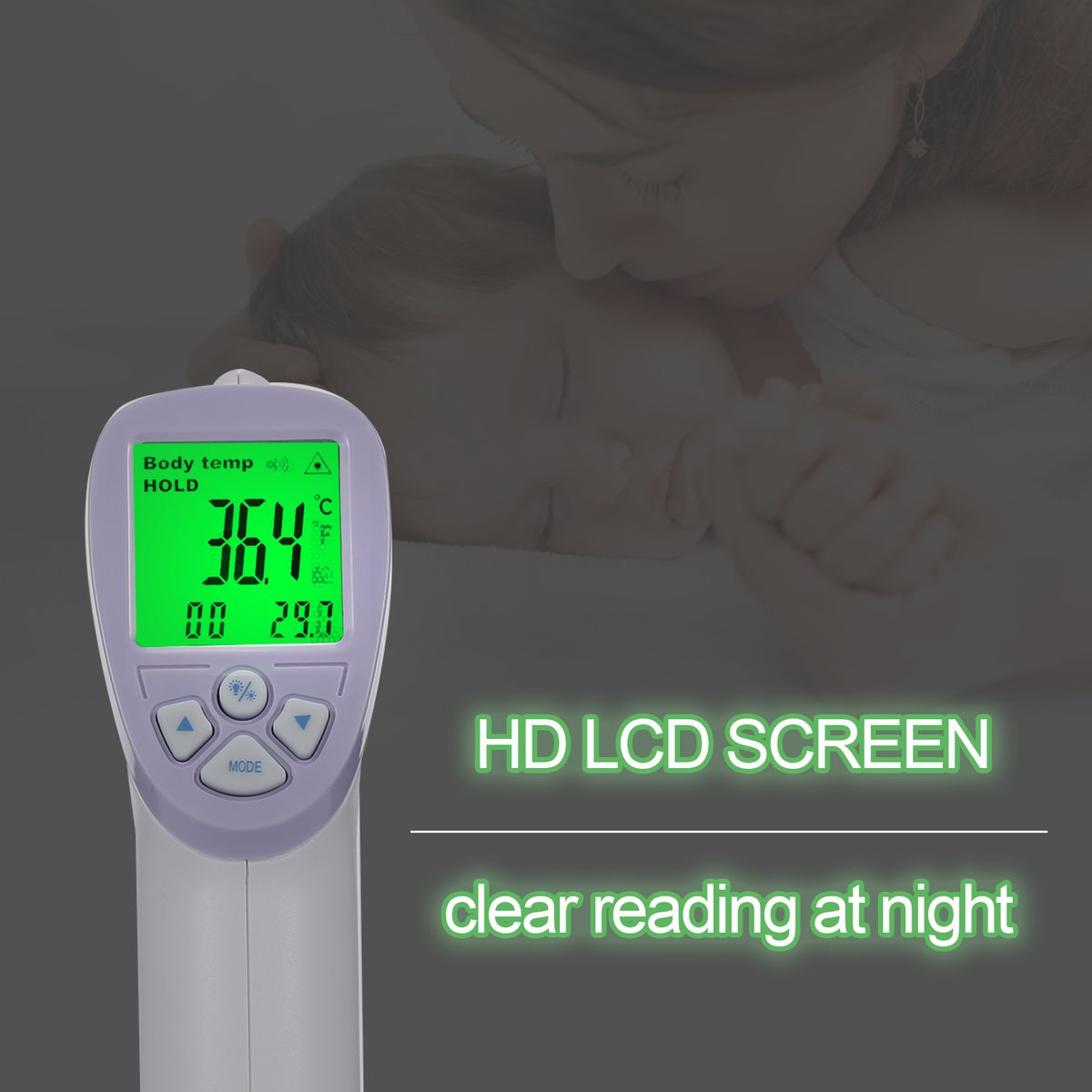 [3 Modes] : n0 mode: measurement mode, if the temperature is in the range of 32 ℃ -42 ℃, the screen displays green; if the temperature> 42 ℃, the screen displays red warning and symbol quot;Hi quot;; if the temperature