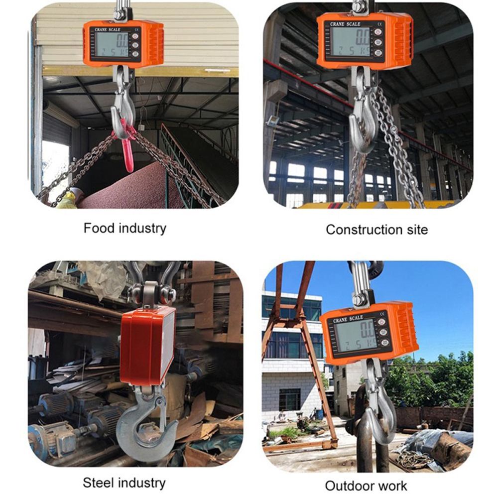 Features:Heavy Duty Crane Scale -- Maximum 1000kg (2204lb) and minimum 10kg (22lbs) bearing capacity, 0.5kg resolution. Applicable to food/ steel industry, construction site, outdoor work, etc..