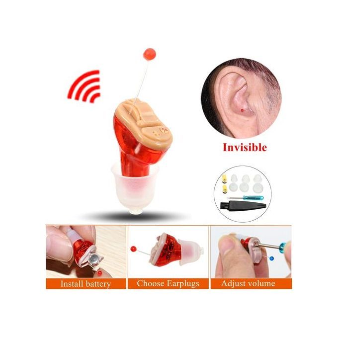 1x Hearing Amplifier,1x Cleaning brush tool,2x Battery,6x Earplugs,1x Screwdriver,1x Plastic Case