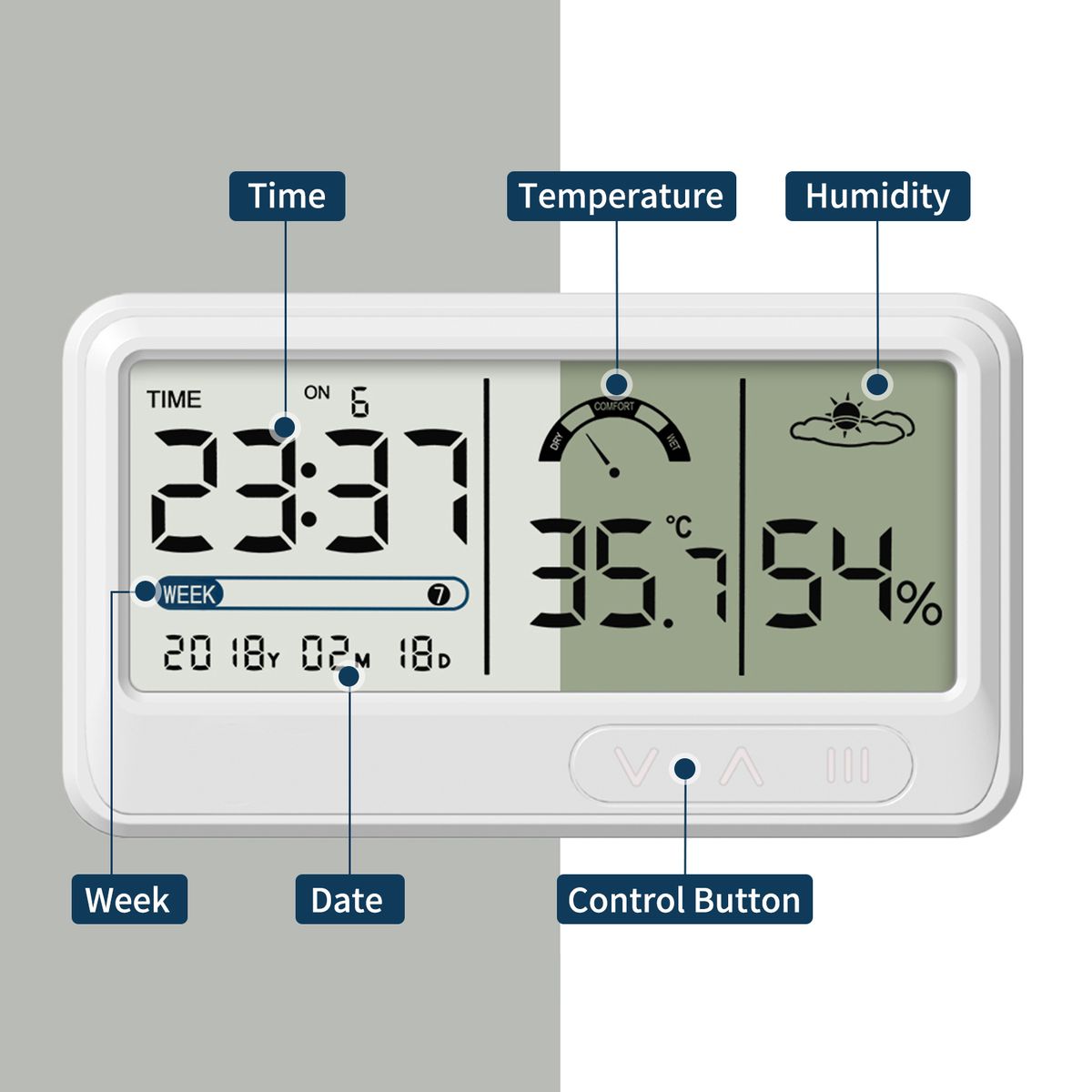 Display: Time, Date, Week, Hum1dity, Temperature(℃/℉)