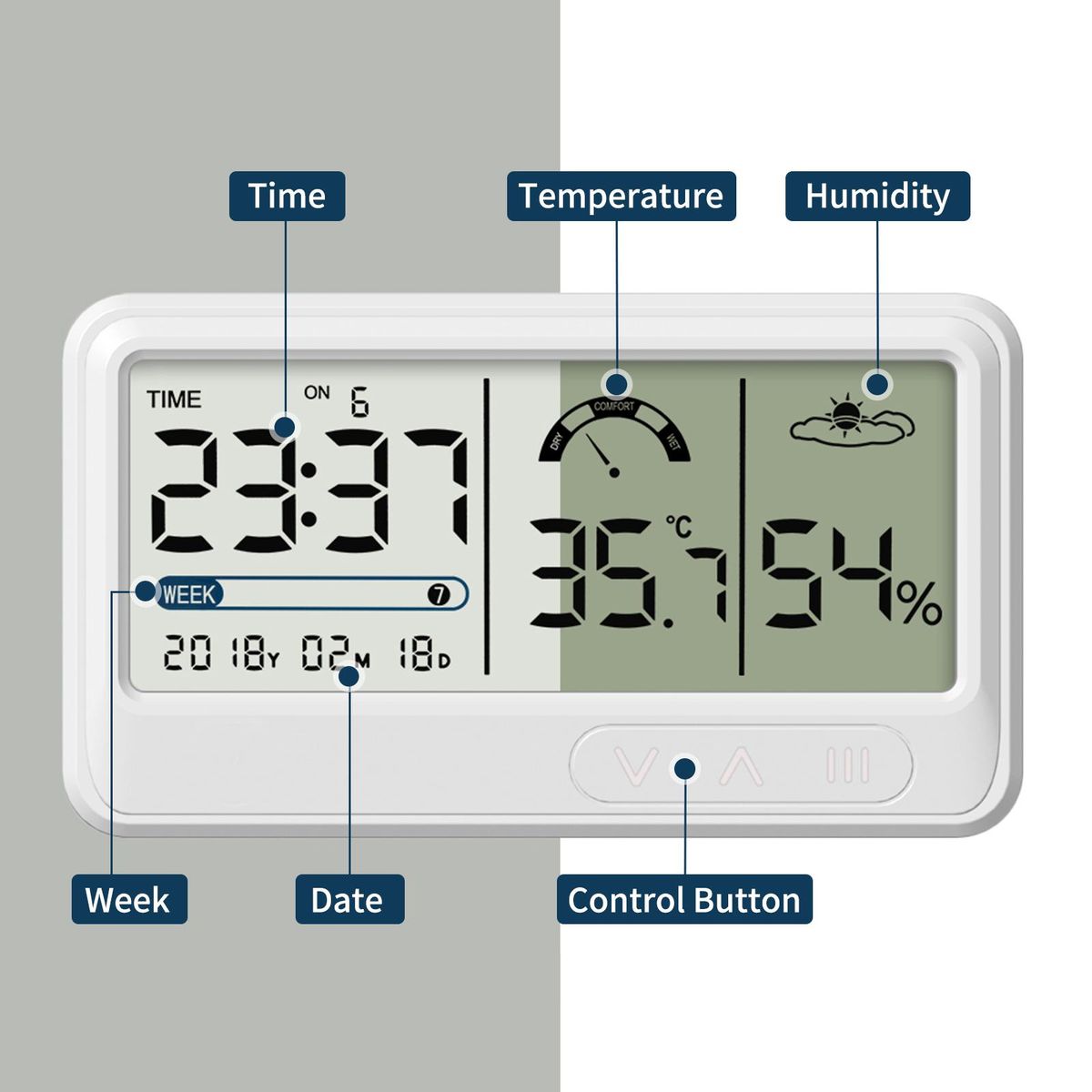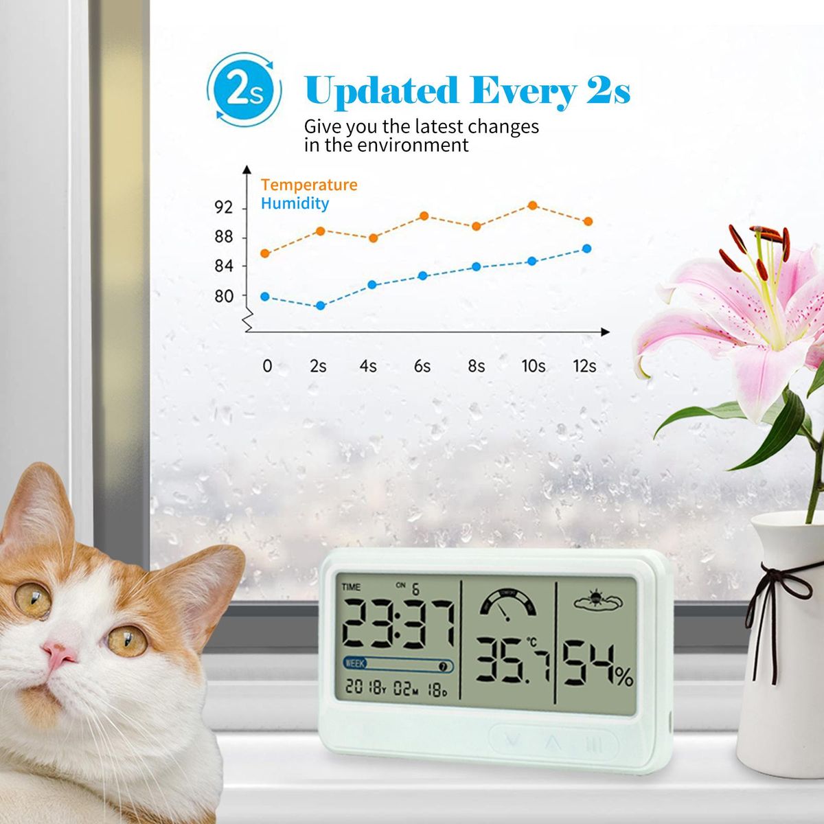 Buy Digital Hygrometer Electronic Temperature Humidity Meters Gauge with Time Date LCD Display Clock Indoor Thermometer Hygrometer with Bracket for Greenhouse Garden Cellar in Nigeria