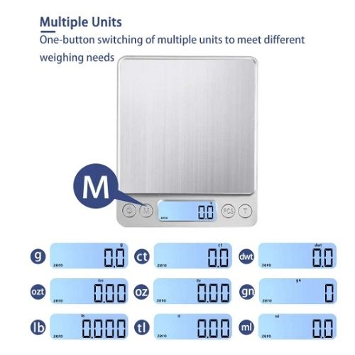 - There are four different units for your choice: kg, g, oz, lb (1000g=35.27oz=2.2lb).