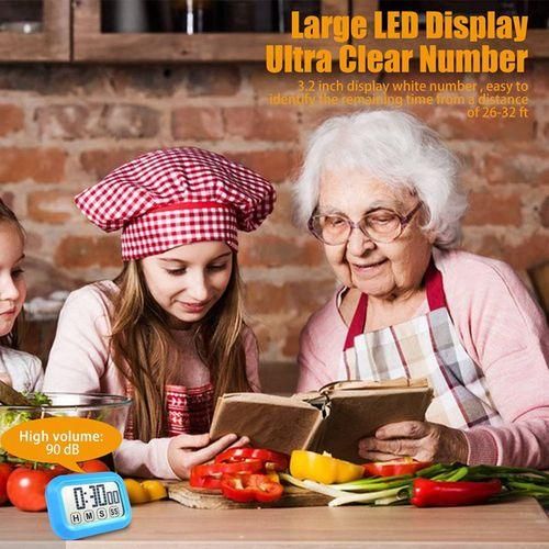 [Large digits & Loud Alert]- A large 2.8 inch digital LED display with clear numbers allows it easy to see the time remaining. and Loud alarm (80-90dB) can ensures you hear this kitchen timer's alarm from anyplace in your house and won't miss it.