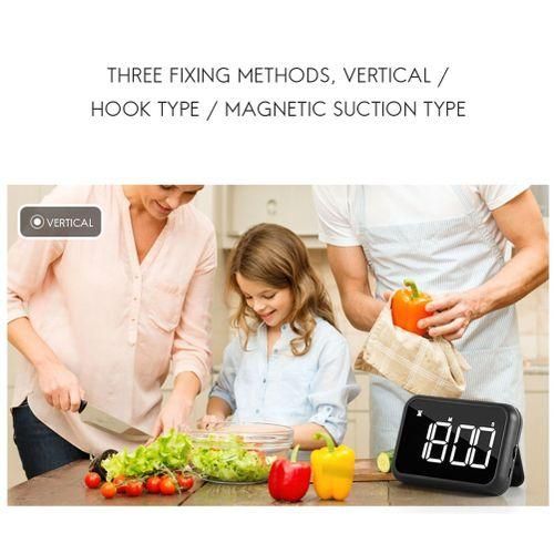 Place The Timer Wherever You Need: Strong built-in magnets covered with silicone for a powerful suction and no slip, easily to stick it on any metal surface directly, or you could hang it anywhere by using the hook, it also comes with a stand for place on desktop.