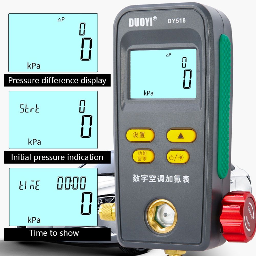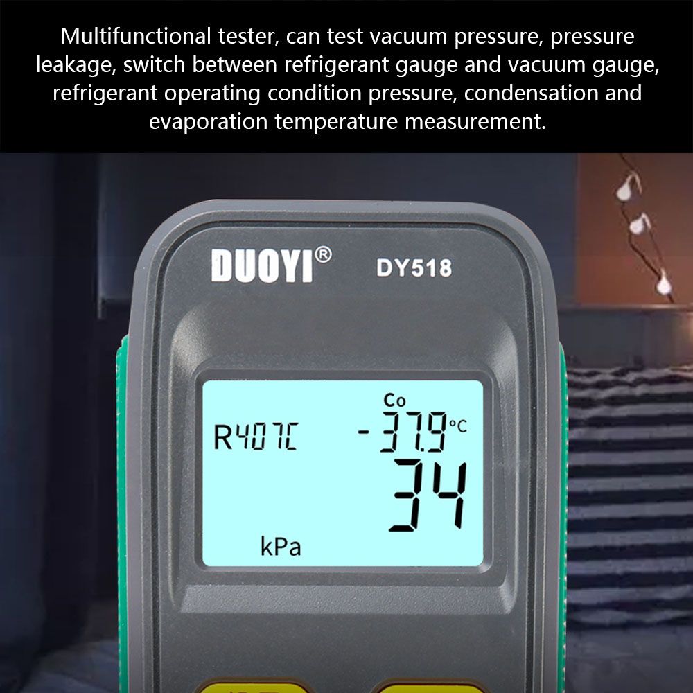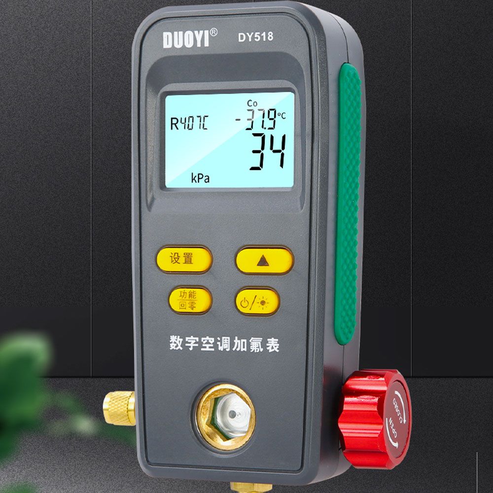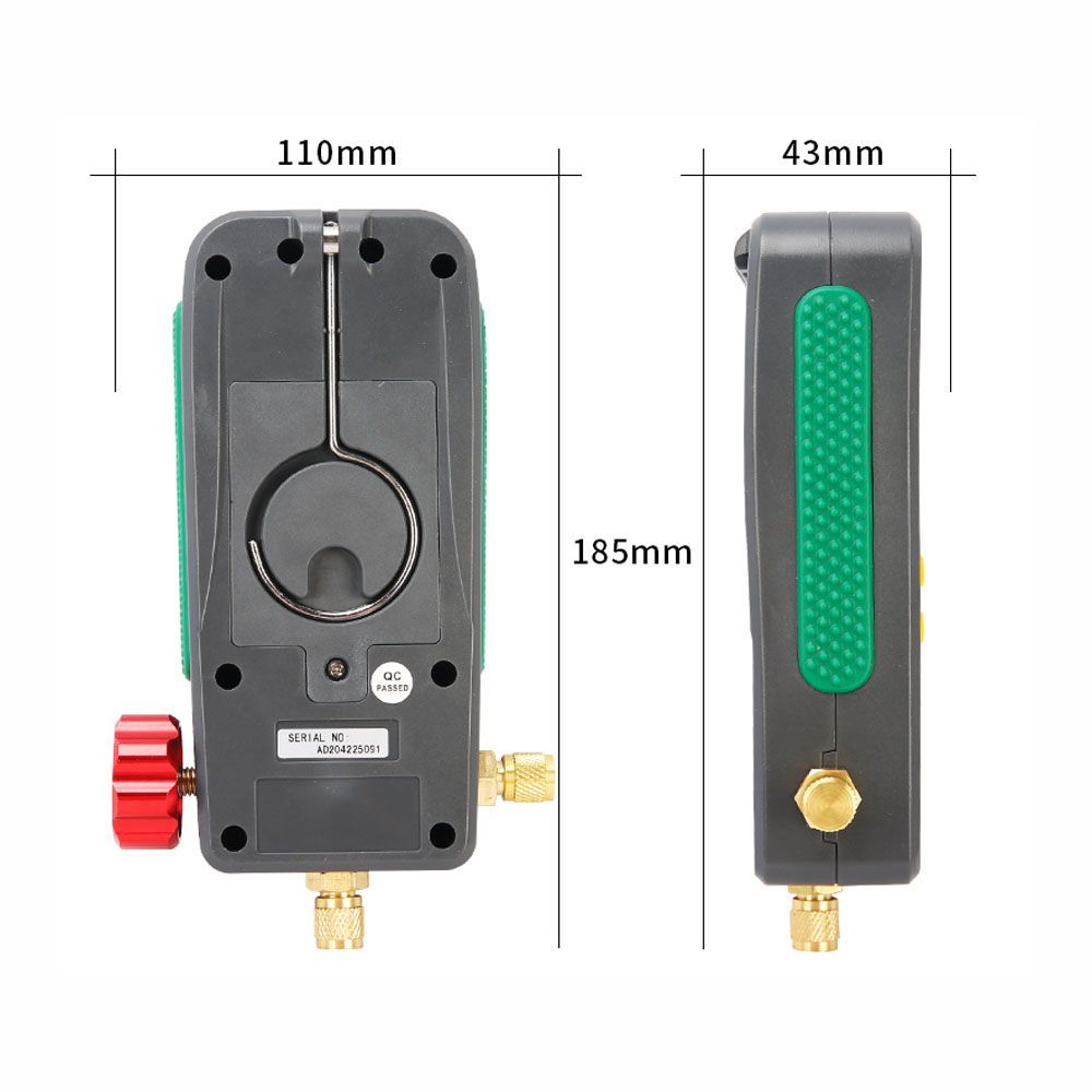 Multifunctional tester, can test vacuum pressure, pressure leakage, switch between refrigerant gauge and vacuum gauge, refrigerant operating condition pressure, condensation and evaporation temperature measurement.