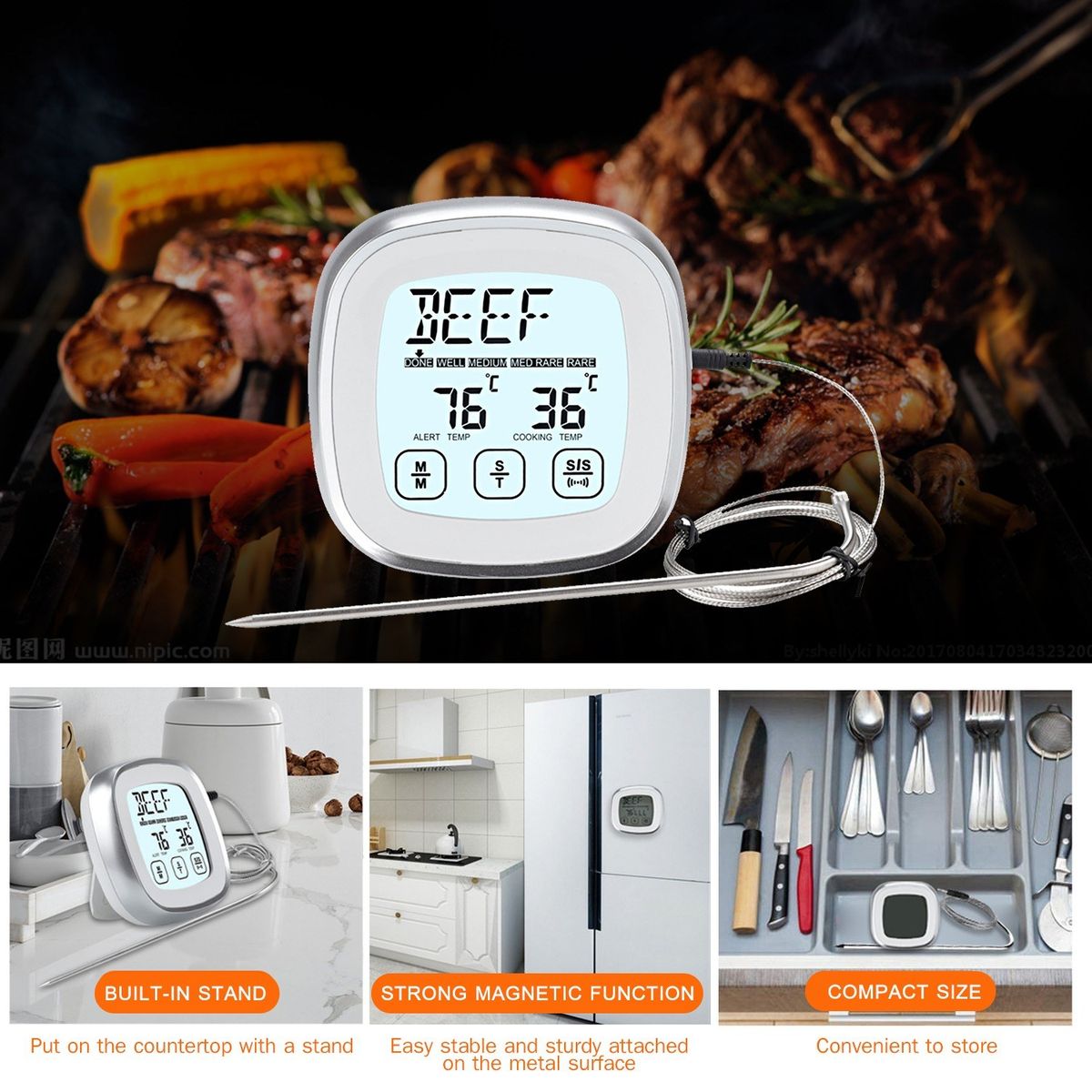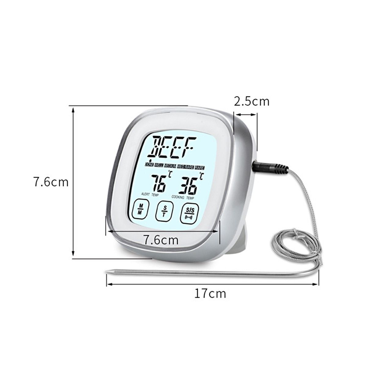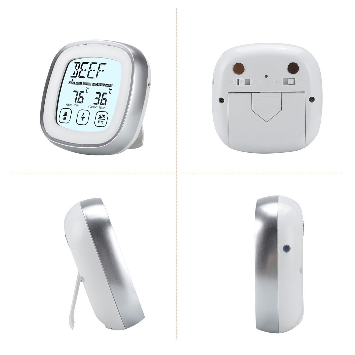 Take the Stress Out of Over Cooking -- The food thermometer comes with a built-in timer, features quot;count down quot; and quot;count up quot; ability, allowing you to set up to maximum time duration of 99 minutes and 59 seconds for your cooking time, when current temperature of cooking food reach target value, the unit will beeps and digits flashing.