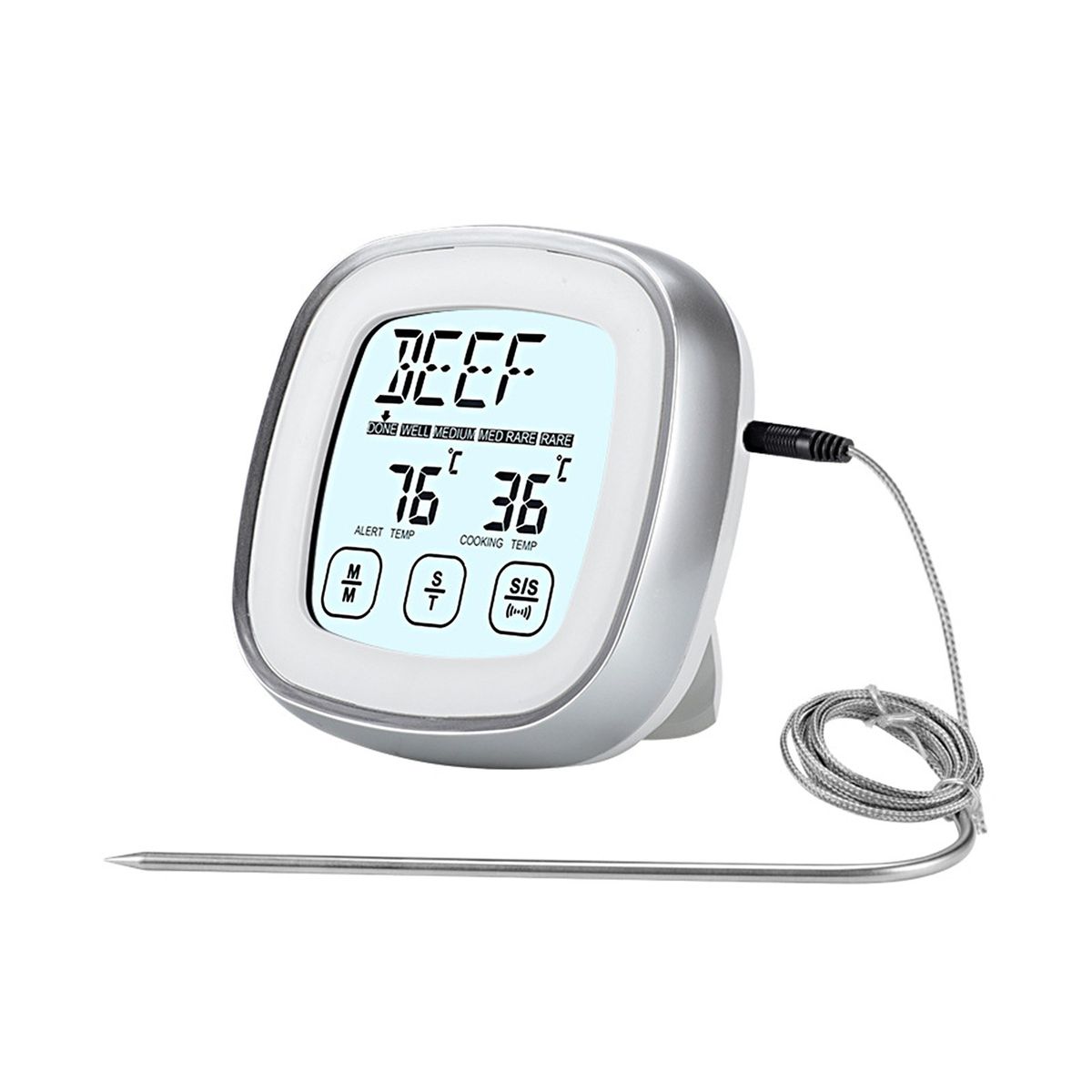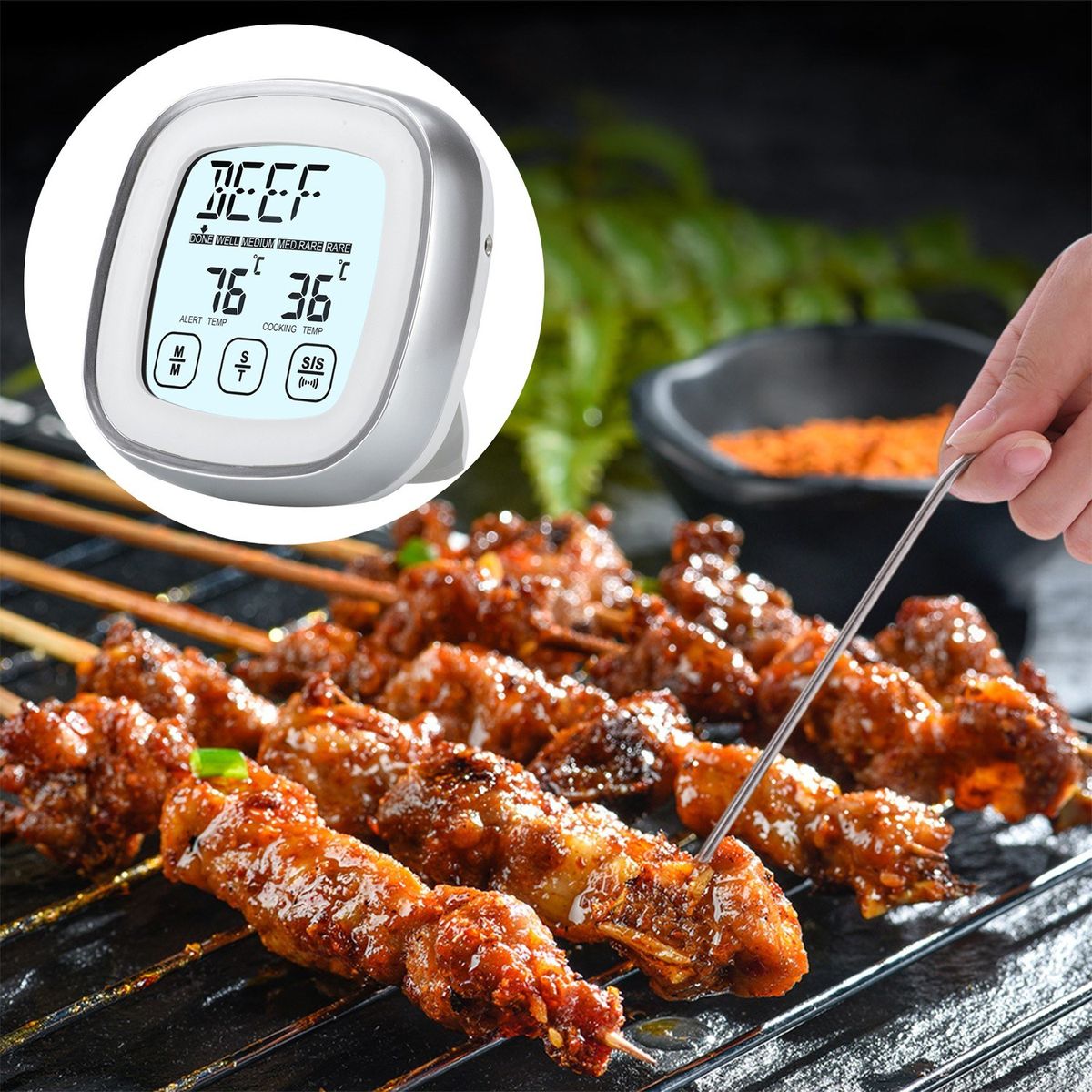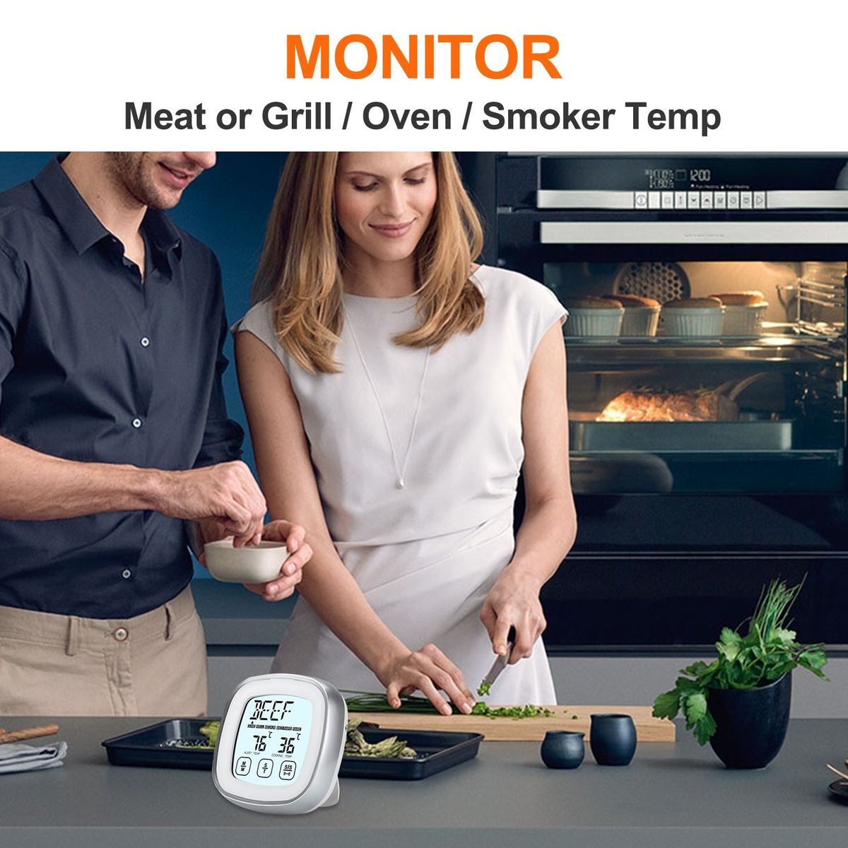 Take the Stress Out of Over Cooking -- The food thermometer comes with a built-in timer, features quot;count down quot; and quot;count up quot; ability, allowing you to set up to maximum time duration of 99 minutes and 59 seconds for your cooking time, when current temperature of cooking food reach target value, the unit will beeps and digits flashing.