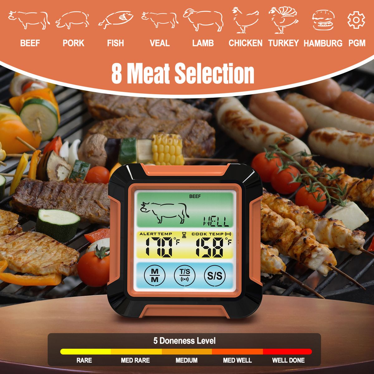 Digital Meat With Long Probe Upgraded Grill With LCD Screen Touch Control Backlight Alert Food Timer for Cooking Oven BBQ IPX7 Waterproof