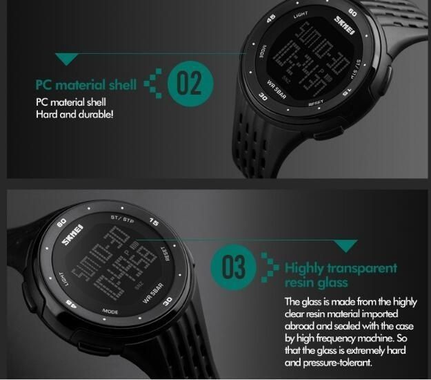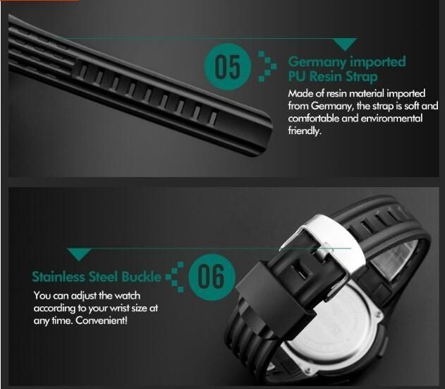Features: Big Dial, LED Display, Round,PU Strap, Stainless Steel Buckle, Resin Glasses.