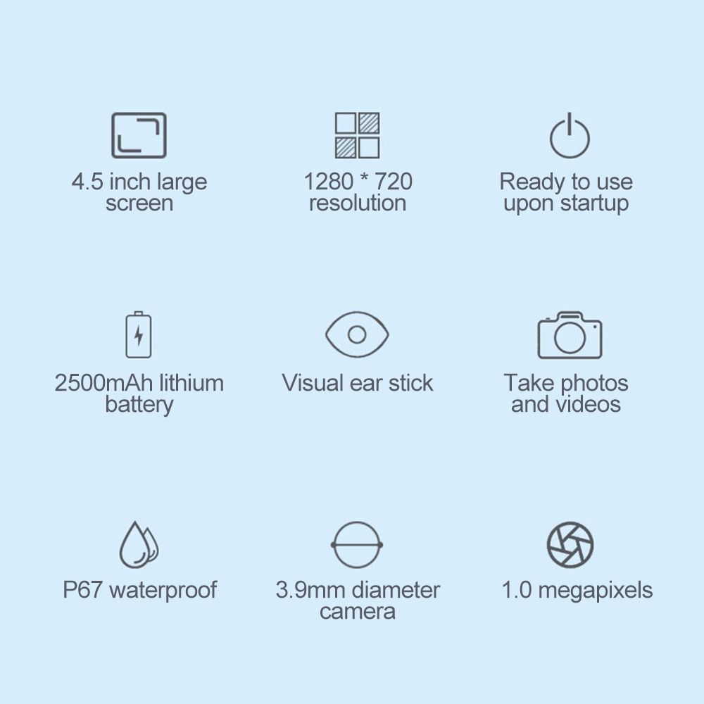 Clear LCD Display: it is a high performance otoscope with a 4.5-inch large color screen with 854x480 resolution.