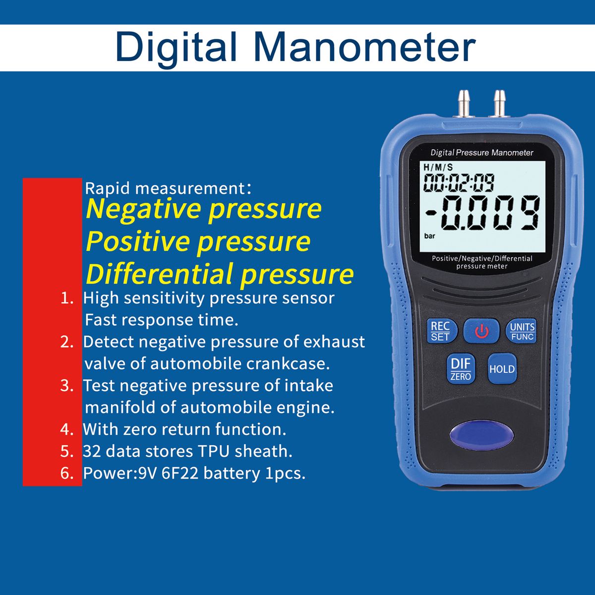 It is suitable for detecting waste gas negative pressure, the engine intake manifold vacuum negative pressure, ventilation duct system pressure measurement, and line pressure stress tests in the troubleshooting of the system.