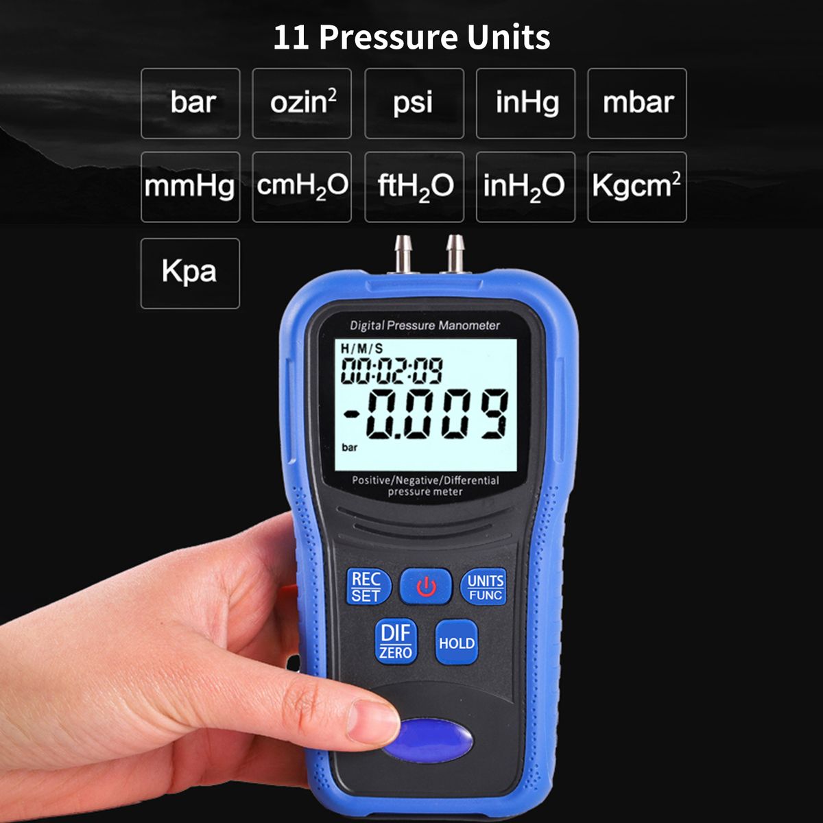 Measuring negative/positive/differential pressure, with the following optional units of measurement: bar, ozin sup2;, psi, inHg, mbar, mmHg, cmH2O, ftH2O, inH2O, Kgcm sup2; and Kpa, a total of 11 common units.