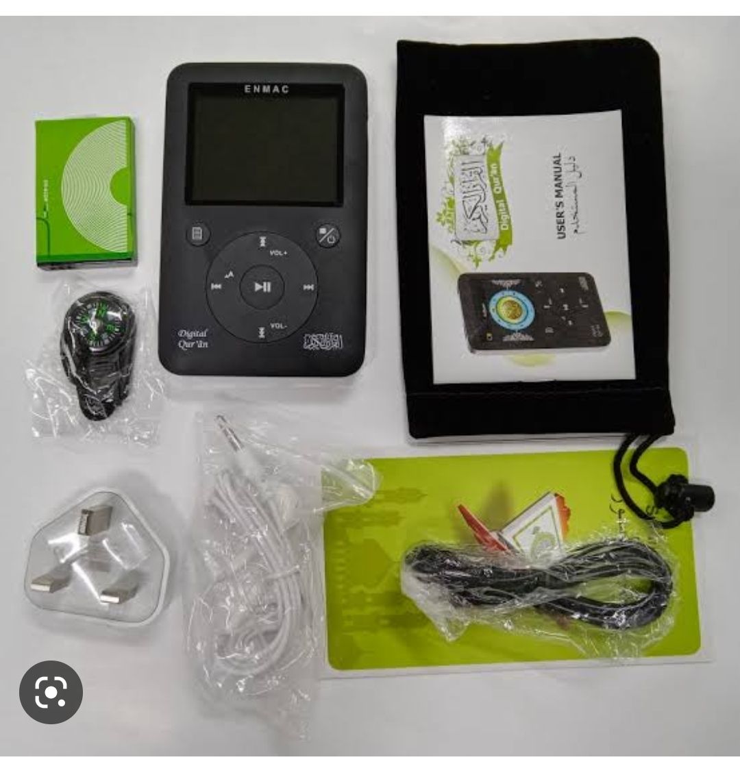 •With this new breakthrough technology, the Recitation is easy & Holy Quran learning process is accelerated!****Product Specifications for 8 GB Flash Memory optional of Ayah /Surah/Word of your choice and start listening (Read Word by Word)3.Complete Holy Qur'an in voices of different Reciters 4Dua, Adhan,5,Nasheed (File format: MP3) as optional in the pen via USB cable6.Also include Quran Tafseer7.Clear and loud sound with built-in speakers and Headphone8.Internal Li-Ion Chargable Battery12. PC connection. USB allows the user to connect with the PC13.User-friendly designed, high quality voice14.TF Card Support up to 32GB15.Earphone jack