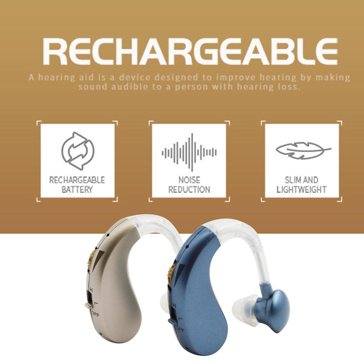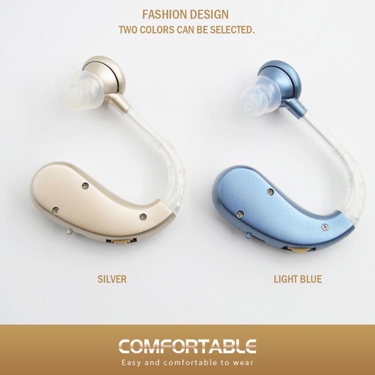 Features: USB charging, convenient and fast, long battery life, 2 hours of full charge, 35 hours of continuous work. Simple mini design, fashionable color matching. It's not just a hearing aid, it's adjustable to fit both ears. Using digital and frequency control, it can easily adapt to different sound envments. The volume is adjustable, so you can change it according to your preference. Small size, lightweight, comfortable wearing feeling, will not cause ear pain, its neutral design makes it the perfect choice for both men and women. You will receive 1 headphone loudspeaker, 1 USB charging cord, 1 adapter, 4 silicone tips, and 1 cleaning brush. Specifications: Item Type: GE-T10 Hearing Amplifier Material: ABS Color: Blue, Silver(Optional) Maximum Sound Output: 129+/- 3dB Sound Gain: ≥ 40dB+/- 5dB Total Harmonic Distortion: ≤ 10% Frequency Range: 450-3400MHz Input Noise: ≤32dB Battery Capacity: 30mAh Working Voltage: d.c.3.7V Working Current: ≤1.2mA Charging Time: about 2 hours Working Time: about 35 hours Package Size: Approx.12*9*4cm / 4.7*3.5*1.6in Package Weight: Approx.97g / 3.4oz Package List: 1 * Hearing Aid 1 * Plug (US/EU) 1 * USB Line 4 * Earplug Of Different Size 1 * English User Manual 1 * Cleaning Brush 1 * Storage Box