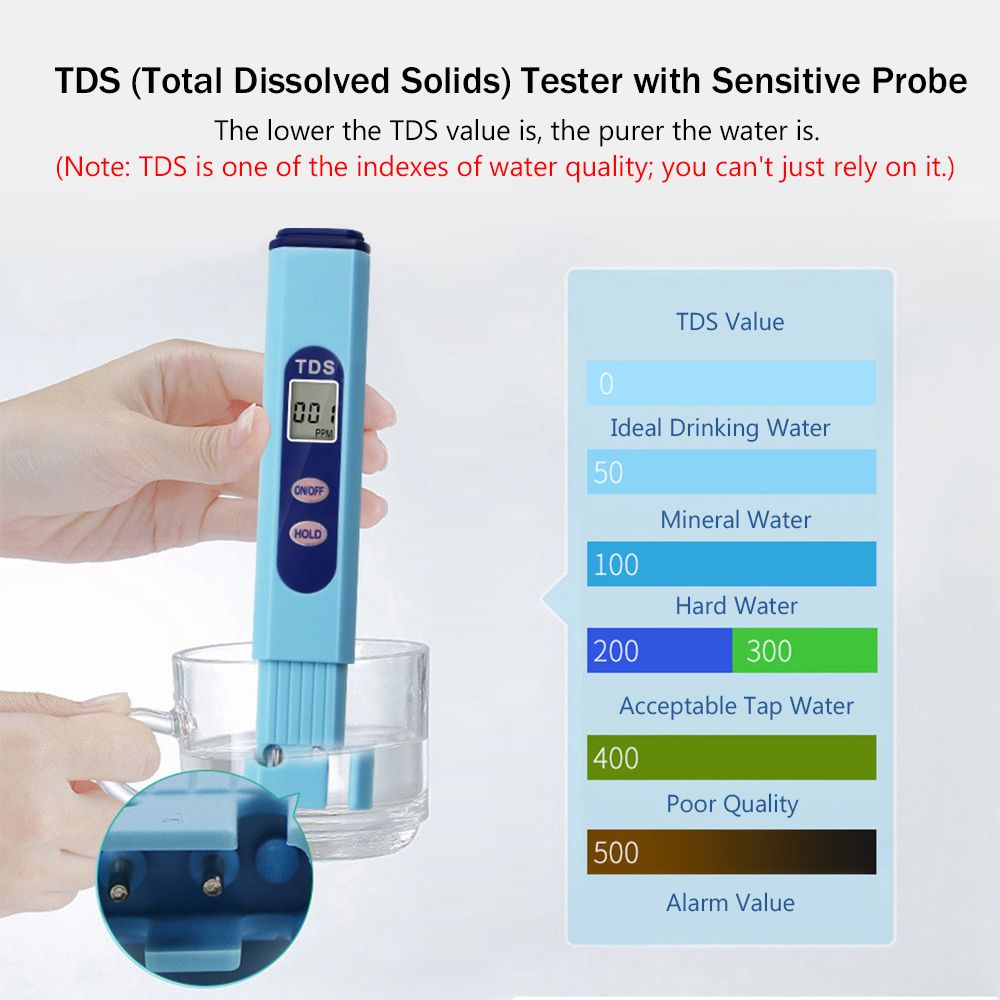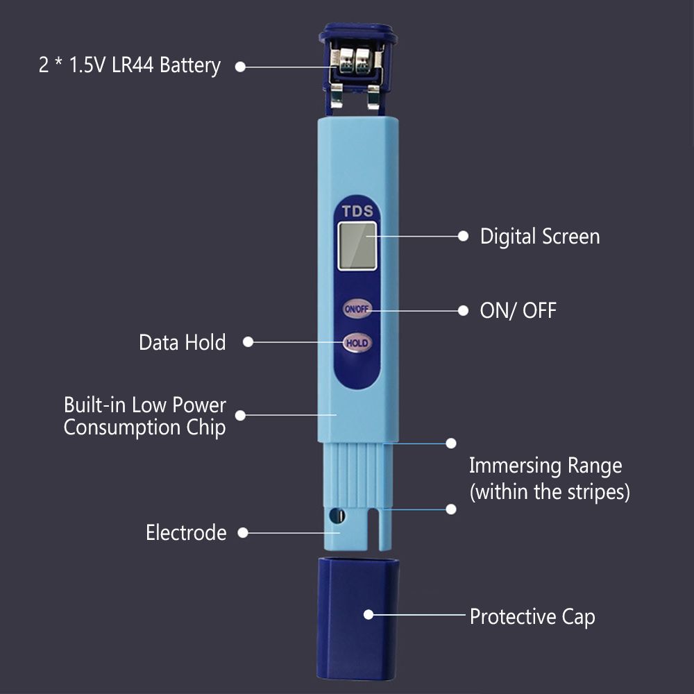 This water quality analyzer can test the TDS of drinking water, tap water, water purifier, aquarium, swimming pool, hydroponics, aquiculture, agriculture, etc.
