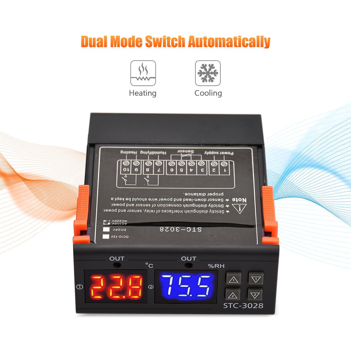 Temperature thermostat with high performance and multiple functions, including heating, cooling, humidification, dehumidification and temperature correction.