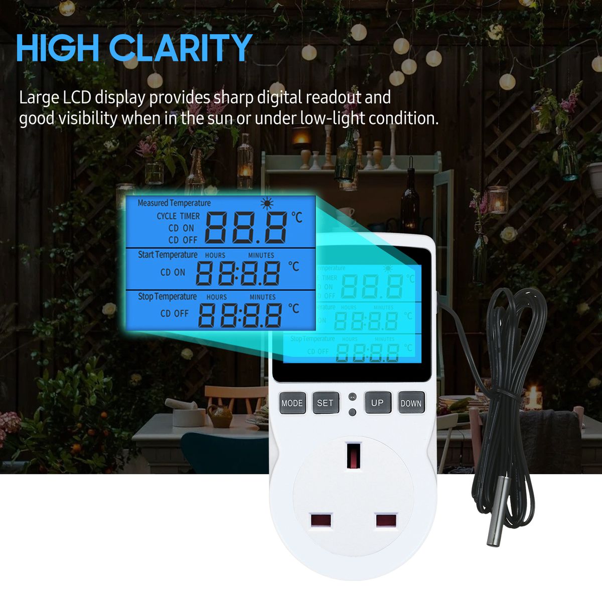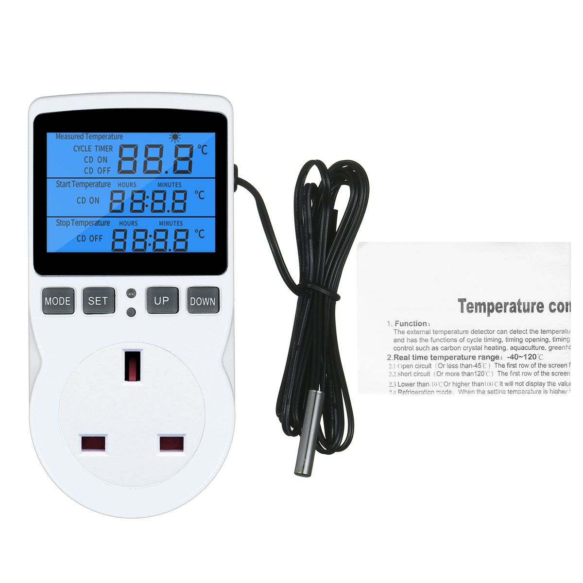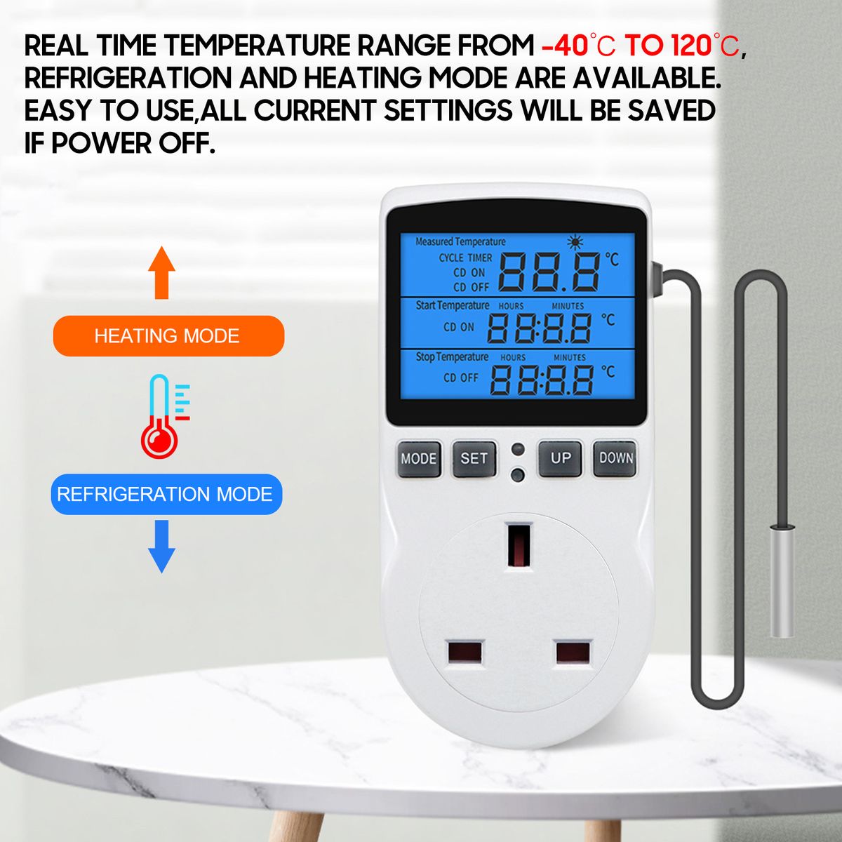 Smart Digital Thermostat Controller: the external temperature detector can detect the temperature, set the opening temperature and closing temperature, and has the functions of cycle timing, timing opening, timing closing and timing switch.