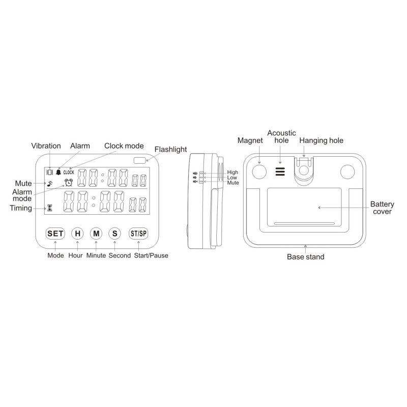 6. Function: positive/countdown, clock display, alarm clock