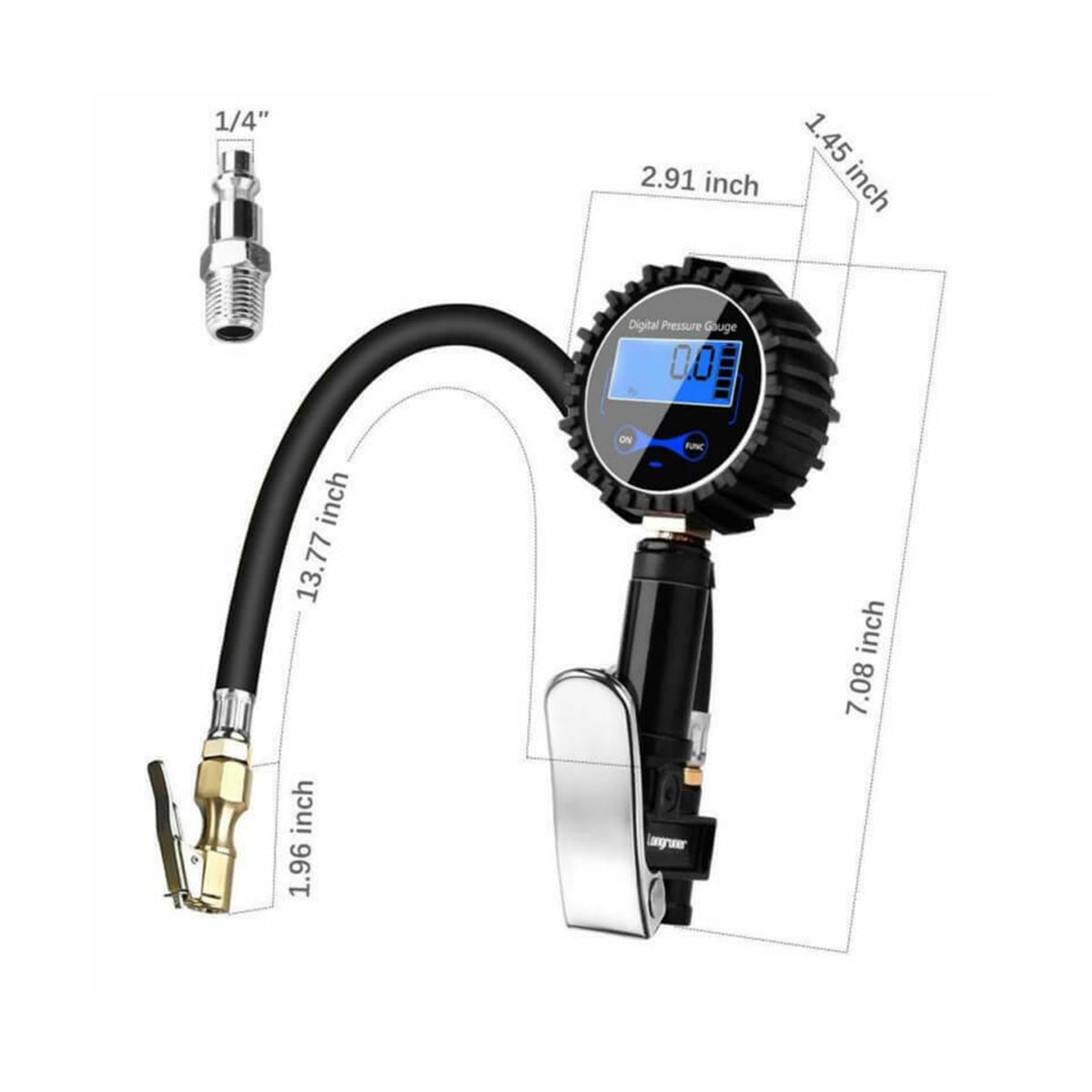 Detailed Information About The Product:MULTI-FUNCTIONS DESIGN - Designed for checking the tire pressure; Connecting the air pump to inflate the tire; Deflating the air if higher tire pressure. Also a tire inflator to inflate tires when connecting an air compressor. A Tire Venting Machine to bleed off overinflated tires via press its air bleeder valve.