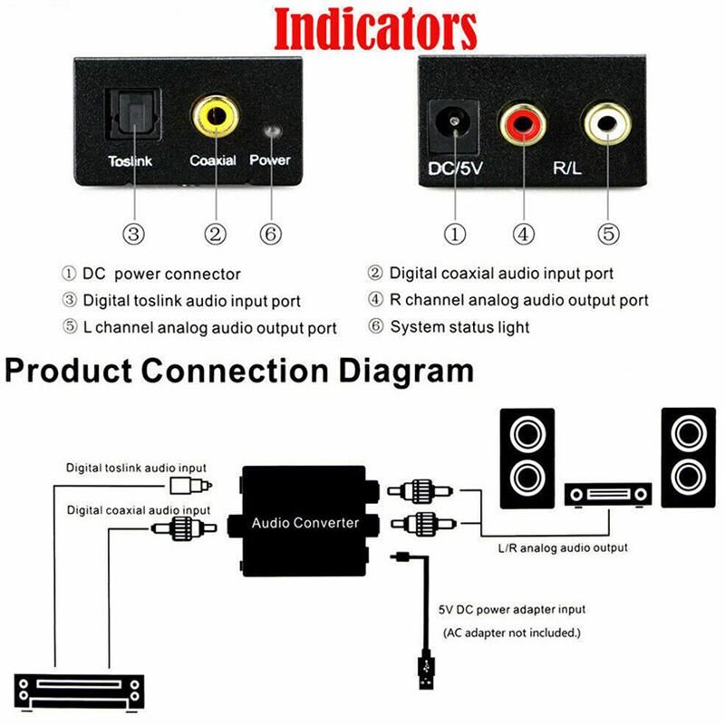 It converts Coaxial or digital audio signals to analog stereo L/R audio and available for connection to an external device such as an amplifier via standard RCA-style jacks. size, Easy to install and simple to operate. Input Audio: Coaxial o r Toslink digital audio
