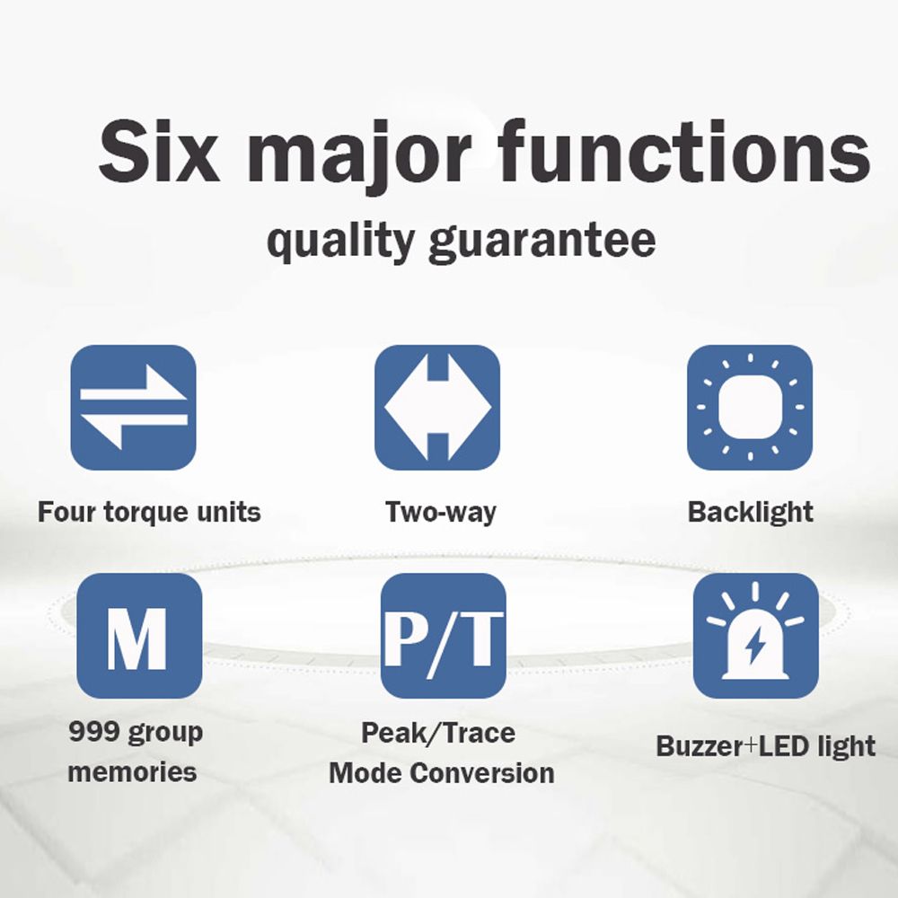 Pre-set values with sound and light alarm, preset values according to the torque to be measured, when the is switched on and the preset target torque value is reached, the will sound long and the red light will be on.