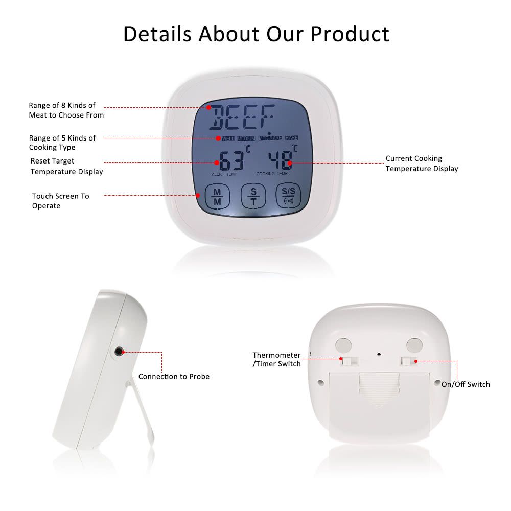 Other functions: switch of ℃ and ℉, backlight, 99:59(min:sec) countdown and timer.