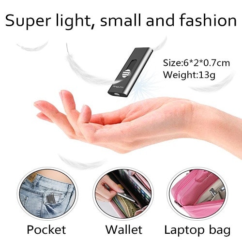 Easy to use: press the & ldquo;REC & rdquo; button to start the recording, press the & ldquo;STOP & rdquo; button to stop and quickly save the recording, press the & ldquo;PLAY/PAUSE & rdquo; button to play or pause the recording. You can also repeat, fast forward or rewind the recording by pressing the corresponding buttons. Pocket-sized makes it easy to carry around.