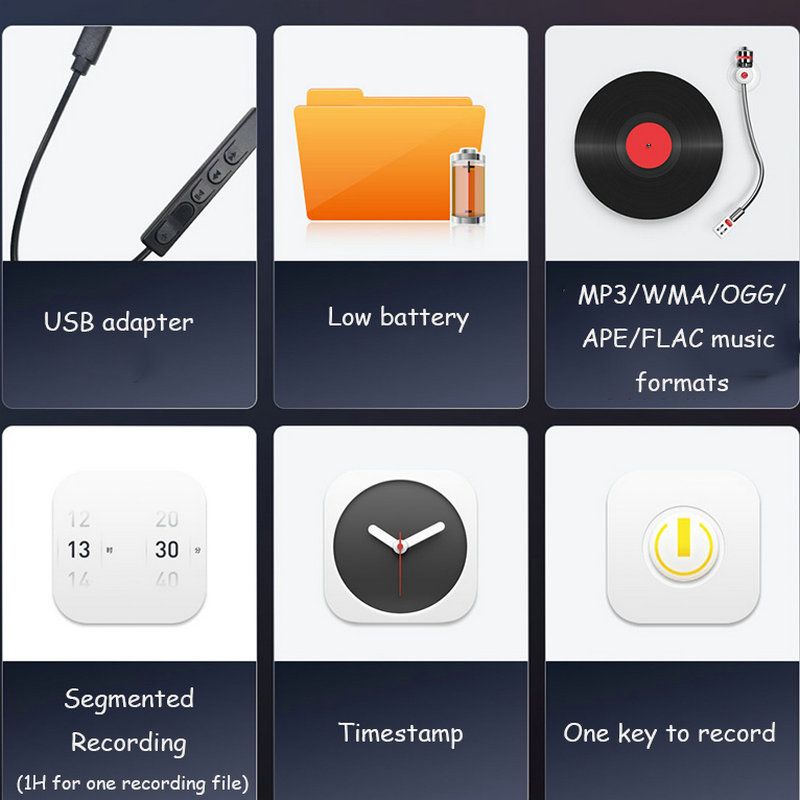 1. Shell made from metal and zinc alloy material, anti-fall strongly 2. Profeional recording pen , HD recording 3. Timestamp,Name the recording files by date automatically 4. AGC function, adjusts the noise source automatically 5. Voice Recorder,MP3 player,and USB flash drive 6. Big built-in memory 8G-128GB 7. Detect low battery and save the recording files automatically 8. Playback function: One key to record/save 9. Plug into headphones to listen to music 10. USB adapter 11. Long battery life 12. Built in rechargeable 280mAh lithium battery 13. USB 2.0 connector , easy to upload and download files 14. Color: Black
