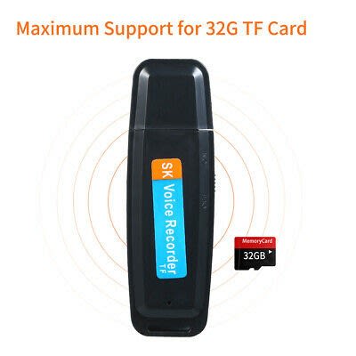 Specifications:Material: ABSInterface: USB 2.0Recording Format: MP3, 128Kbps: Built-in 100mAh LithiumMemory: Support 1-32G TF Card (Not Included)Working : 3 hoursRecorder Size: 7 * 2.2 * 1cm / 2.8 * 0.9 * 0.4inRecorder Weight: 11.2g / 0.4ozPackage Size: 13.2 * 10.5 * 1.5cm / 5.2 * 4.1 * 0.6inPackage Weight: 24g / 0.8oz