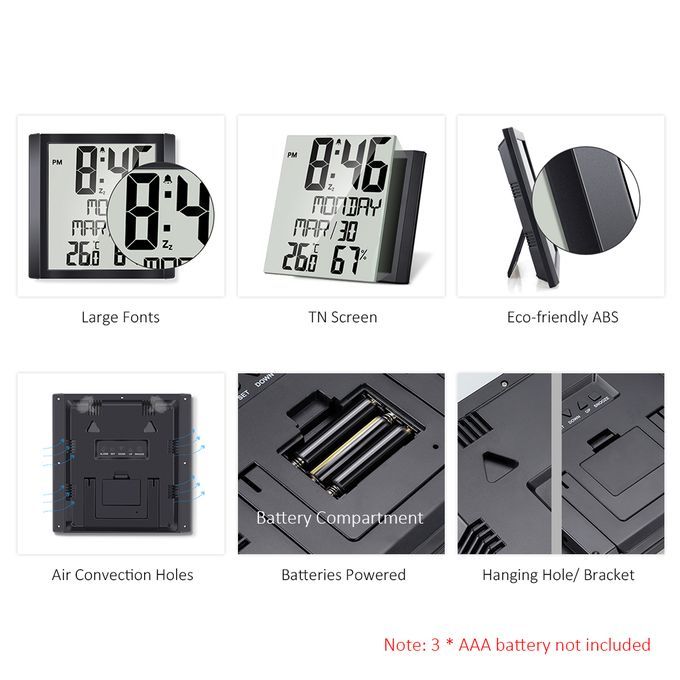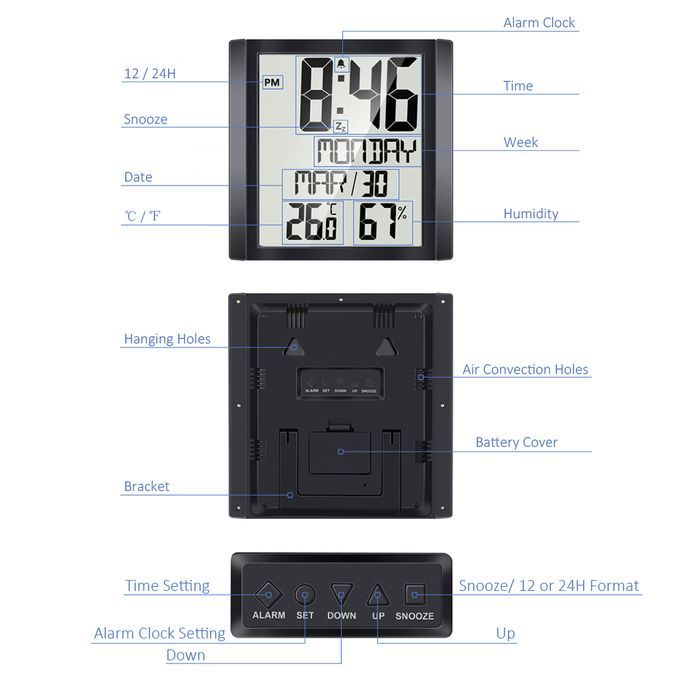 Features:Digital Clock with Thermo-hygrometer: It can not only display time, but also monitor real-time temperature and humidity indoors.