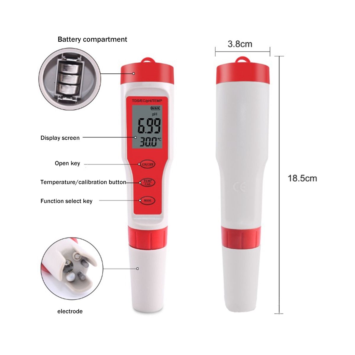 Measures Potential HydrogenpH Electrical ConductivityEC Total Dissolved SolidsTDS and Temperature simultaneouly
