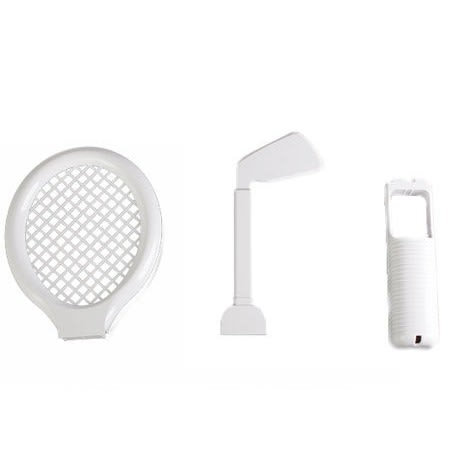 This is the ultimate player's package for the multi-dimensional sports lover. It comes equipped with a tennis racket, baseball bat, golf club, steering wheel, clear remote cover, and Wrist Strap. The lightweight material assures that these accessories won’t be a heavy burden on your arms, allowing you to enjoy lengthier playing sessions without tiring as quickly. Located at the base of the detachable handle is a compartment that is designed for the Wii remote control (with or without Wii MotionPlus adapter connected) to fit right into. With the remote snugly secured, and your chosen attachment screwed onto the handle you can freely serve, swing, and steer to the action of your Wii game. The pack includes a Tennis Racket, Golf Club, Clear Cover (to protect your remote),