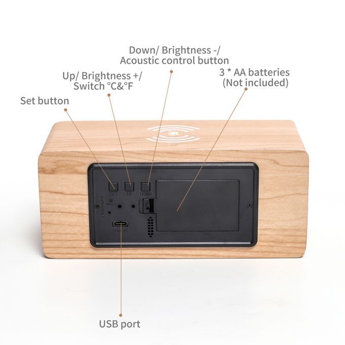 This Digital Wooden Alarm Clock enables you to set up to 3 alarms and set when it goes off --- Monday to Friday or only Saturday to Sunday. And it supports 10W wireless for your mobile phone and offers 2 displaying modes and 3 brightness levels. Besides, you can adjust 12/24H format.