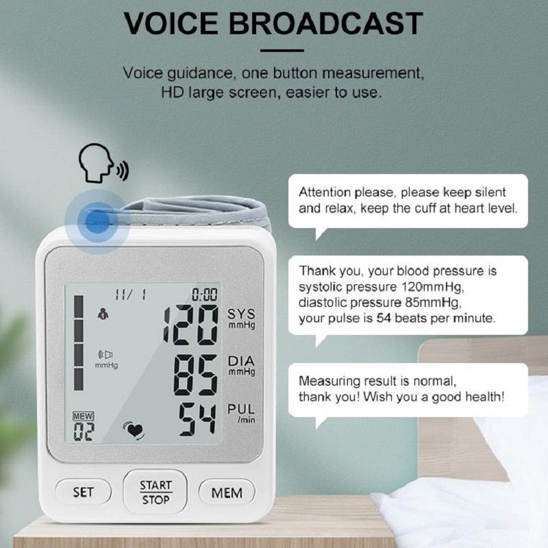 1X Digital Wrist Blood Pressure Apparatus BP Monitor Sphygmomanometer Portable Electronic Tensiometer Heart Rate Pulse Tonometer