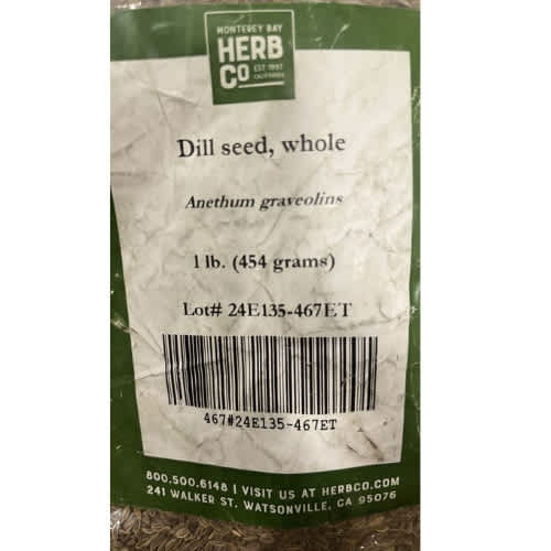 Dill Seed: Dill Seed is a flat, oval, dark brown “seed”. It is not a seed, but a whole fruit of the herb dill. It has a very distinct taste and aroma compared to Dill Weed. which are the seeds of the dill weed plant.