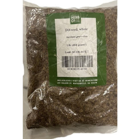 Dill is a tall, flowering plant in the carrot family that is known for its flavorful foliage and seed. What we call dill "seed" is actually the flat, brown fruits of and you can buy dill seeds online here at Herbco. We offer two size options where you can buy dill seed by the pound or quarter pound.