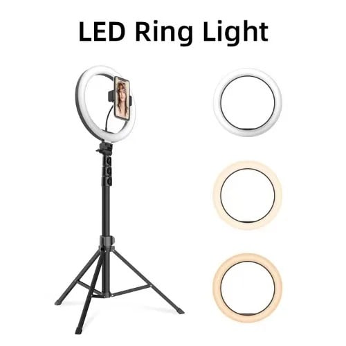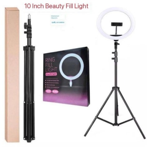1 x 10inches Ring Light 1 x 210cm (2.1m) Long adjustable Tripod stand with mobile phone