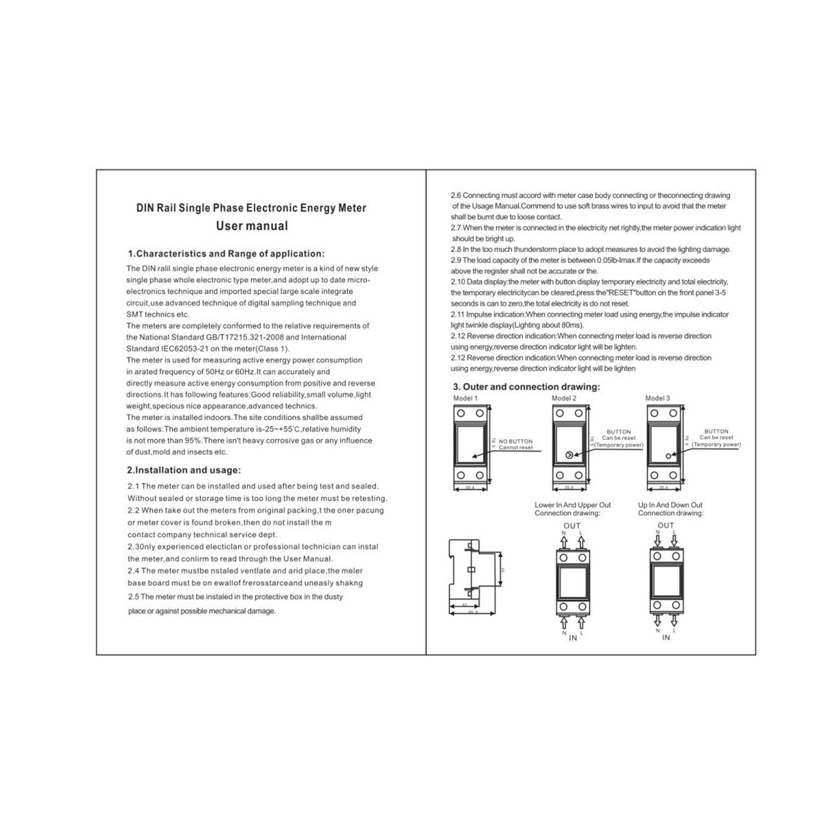 35mm din rail installation The meter is multifunctional display Energy kWh temporary Energy kWh real Voltage real Current by manual pressing