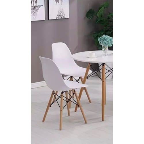 Eames Chair with hand rest is a timeless classic that will never go out of fashion. Our replica design is a commemoration of the original and mirrors its style, quality and beauty. Moulded to the shape of the body, this replica design is available in shiny transparent plastic. The unique Eiffel tower legs are constructed from well polished wood. Like the original, our plastic version displays round markings on the seat. The included Angeina Charlie table has a modern design with a beautiful top and contrasting legs. Made from solid beech, the legs create a sturdy base and the adjustable feet are great for dealing with uneven or unlevel surfaces. The round shape is perfect for saving space in small rooms.This two put together to create a sparkly combinations.