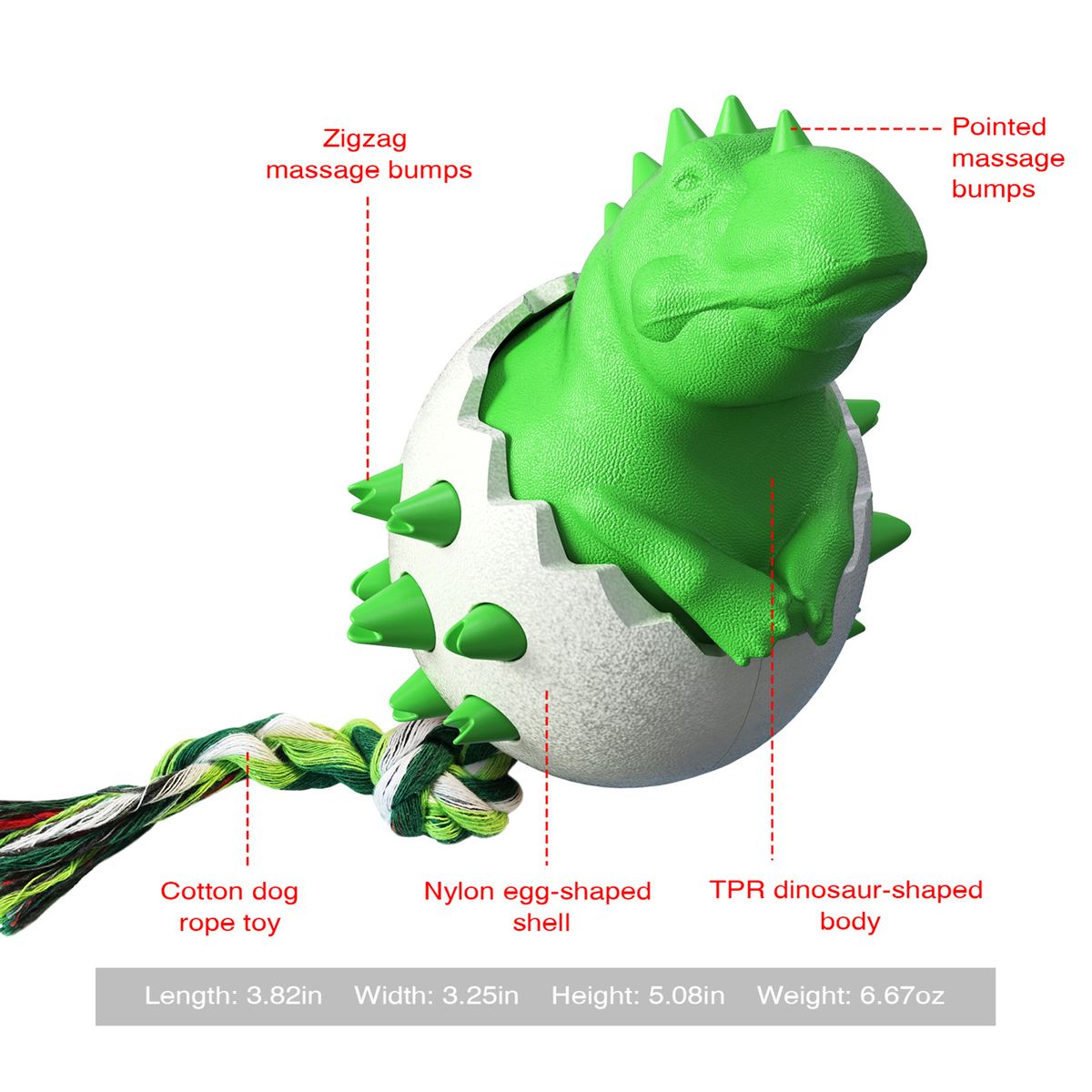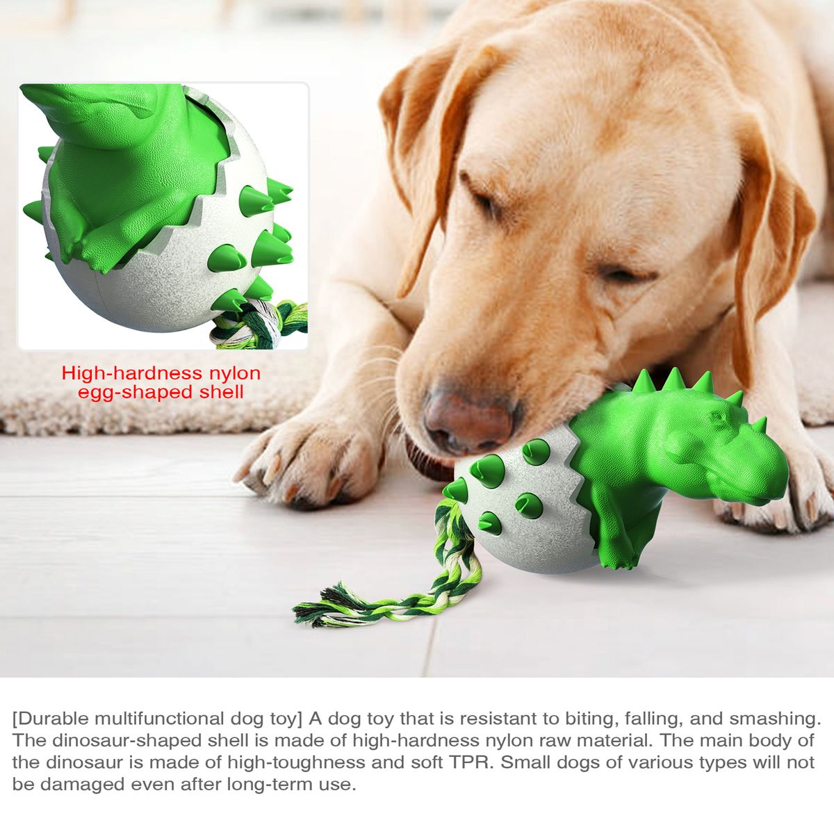 Sturdy and durable: Dinosaur-shaped shell of high hardness nylon material, dinosaur body shape made of high toughness soft TPR, can be used for large, medium and small dogs of all kinds, long-term use will not be chewed up.