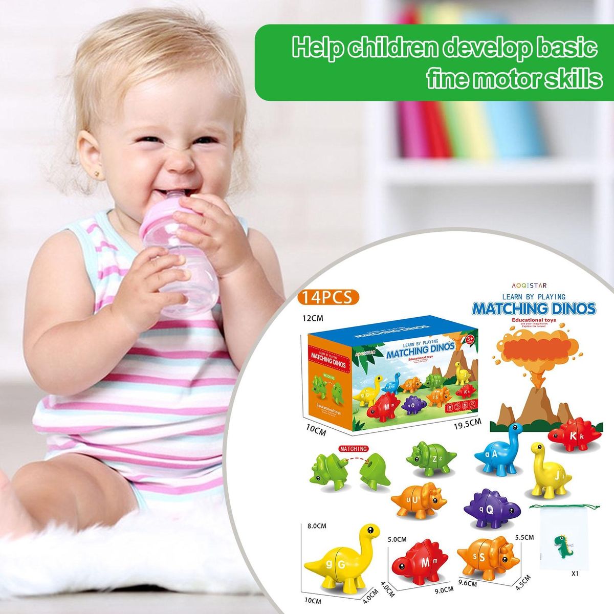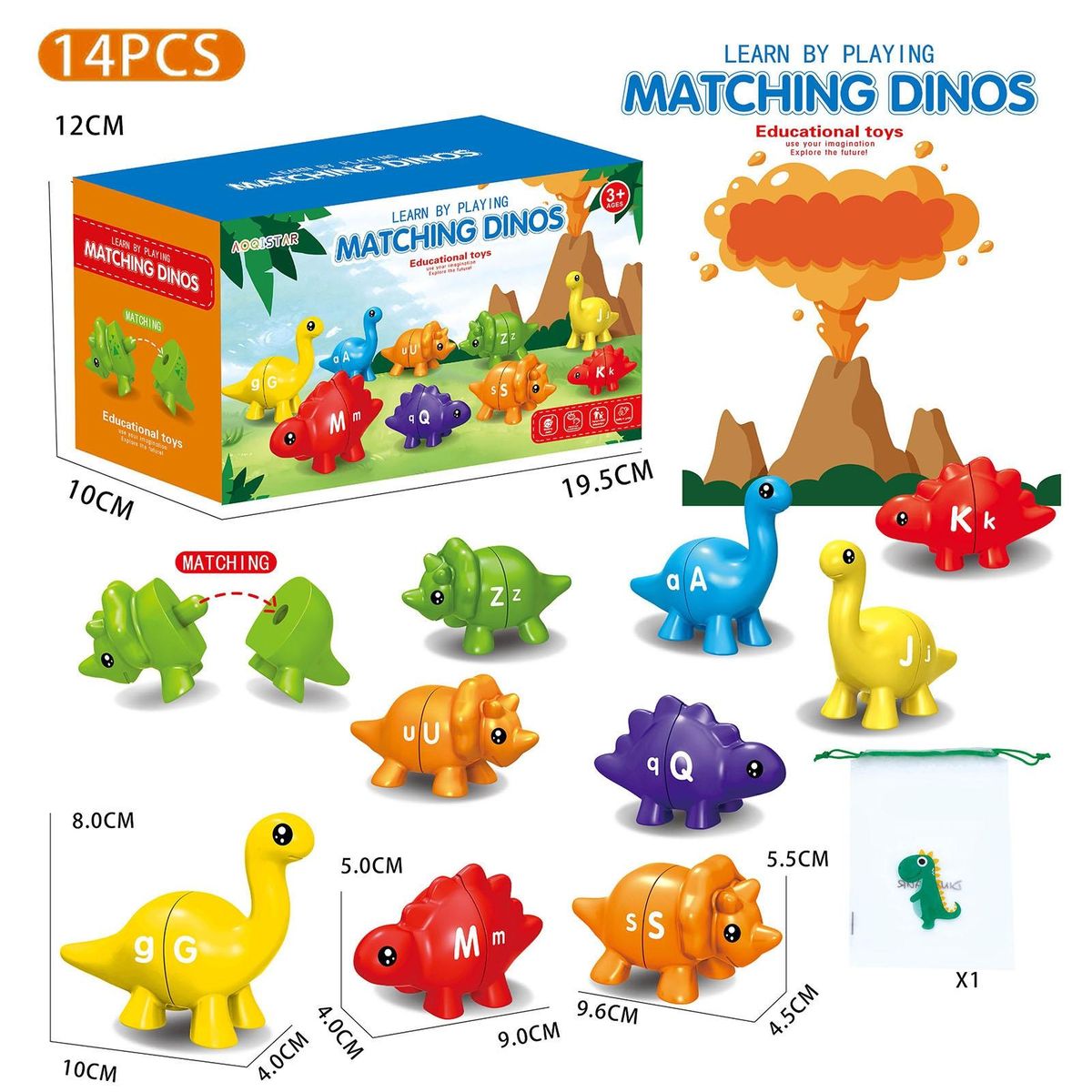 Each dinosaur is printed with two pairs of upper and lower case letters, making it an excellent tool for teaching kids the abc alphabet and helping them master matching their own big and small letters together. the handheld size and smooth connectors of these hand-sized dinosaurs are perfect for little hands to grasp, match, and snap on.